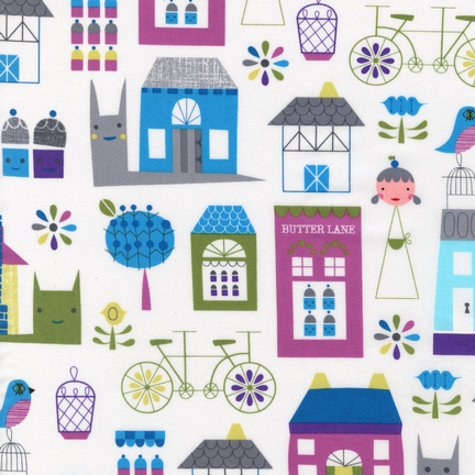This block was heavily inspired by Suzy Ultman‘s fabric collection Suzy’s Dollhouse for Robert Kaufman. Once I agreed to design a miniature house, I started looking for house styles, sizes, shapes, and features everywhere. I found my inspiration right in my very own fabric stash!