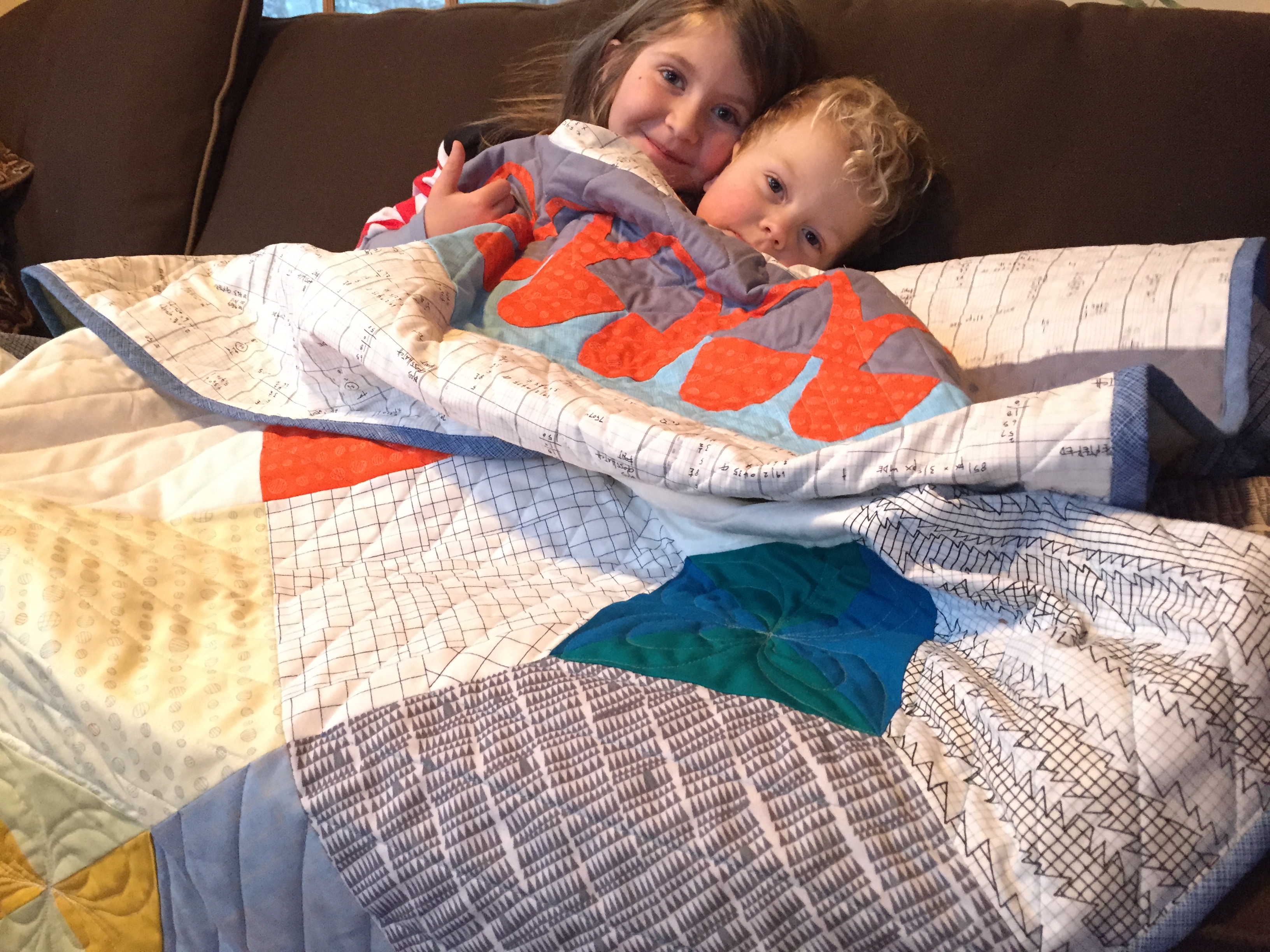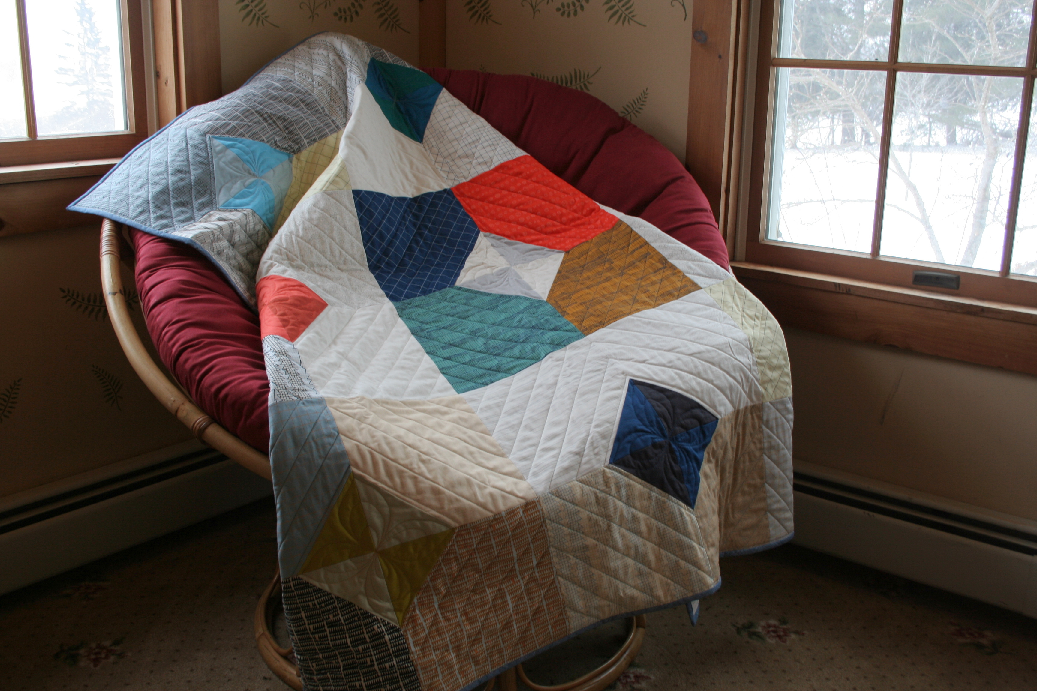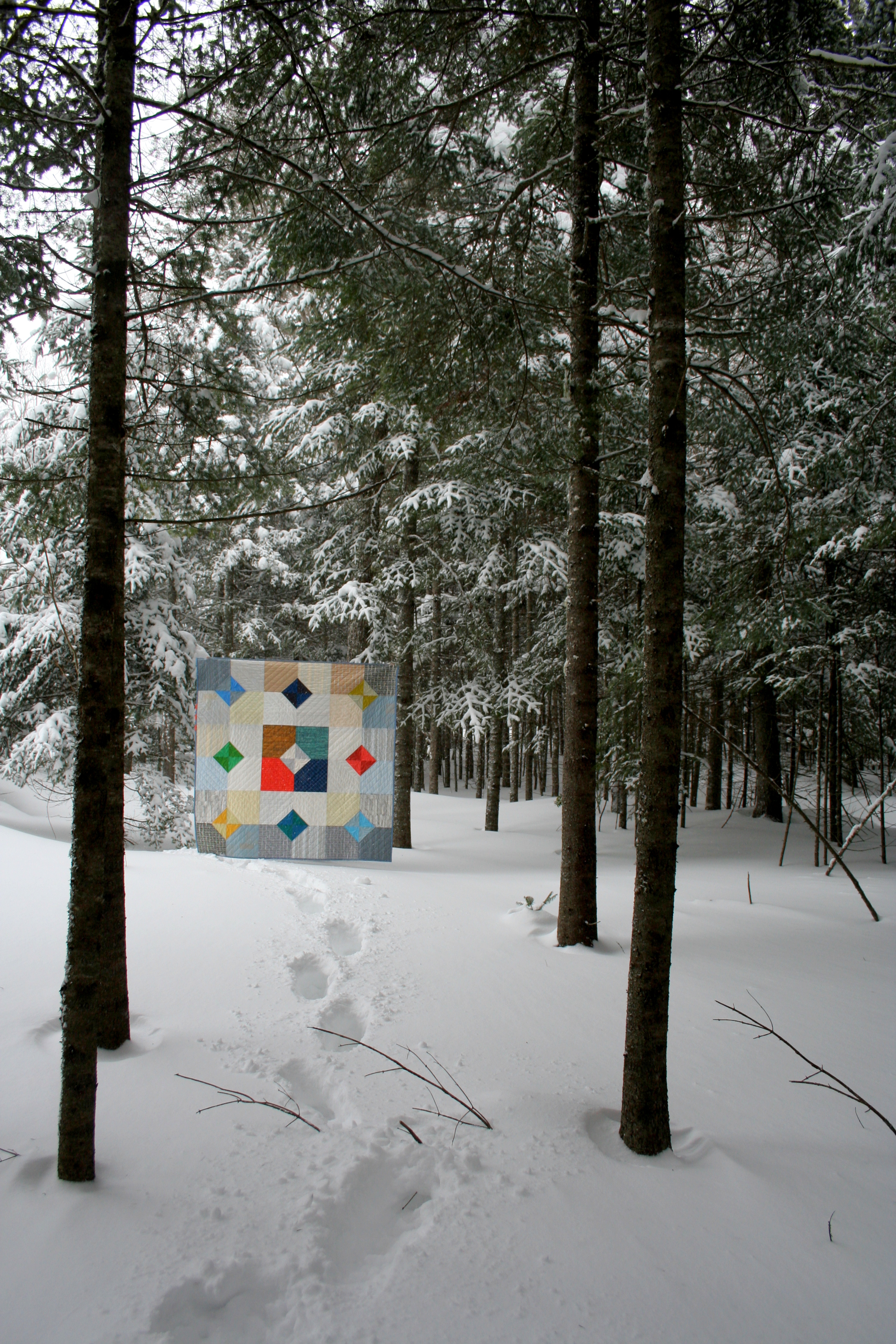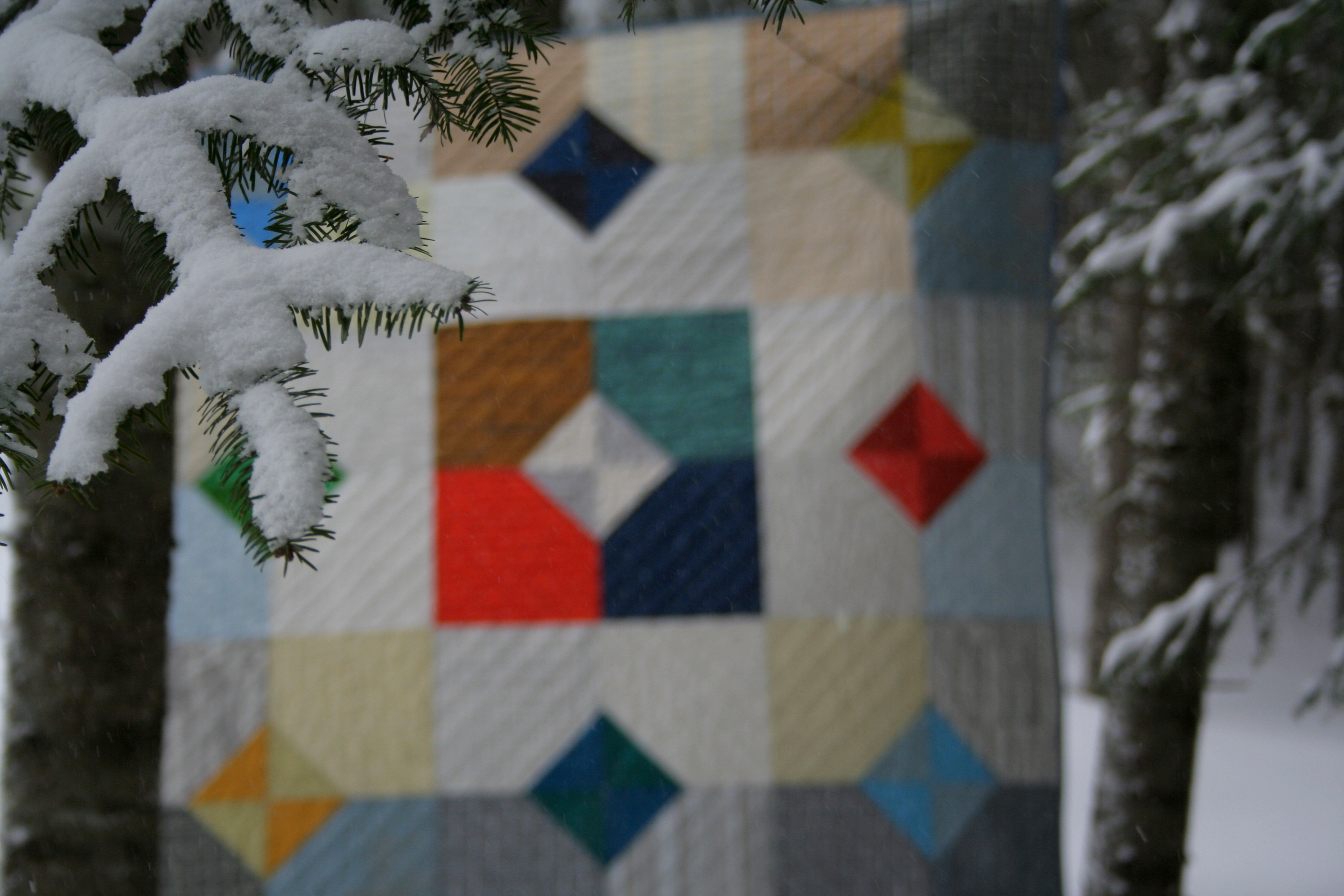 My family helped me photograph the completed quilt during one of our recent blizzards (there seems to be one every few days). We had a little bit too much fun, as you can see.