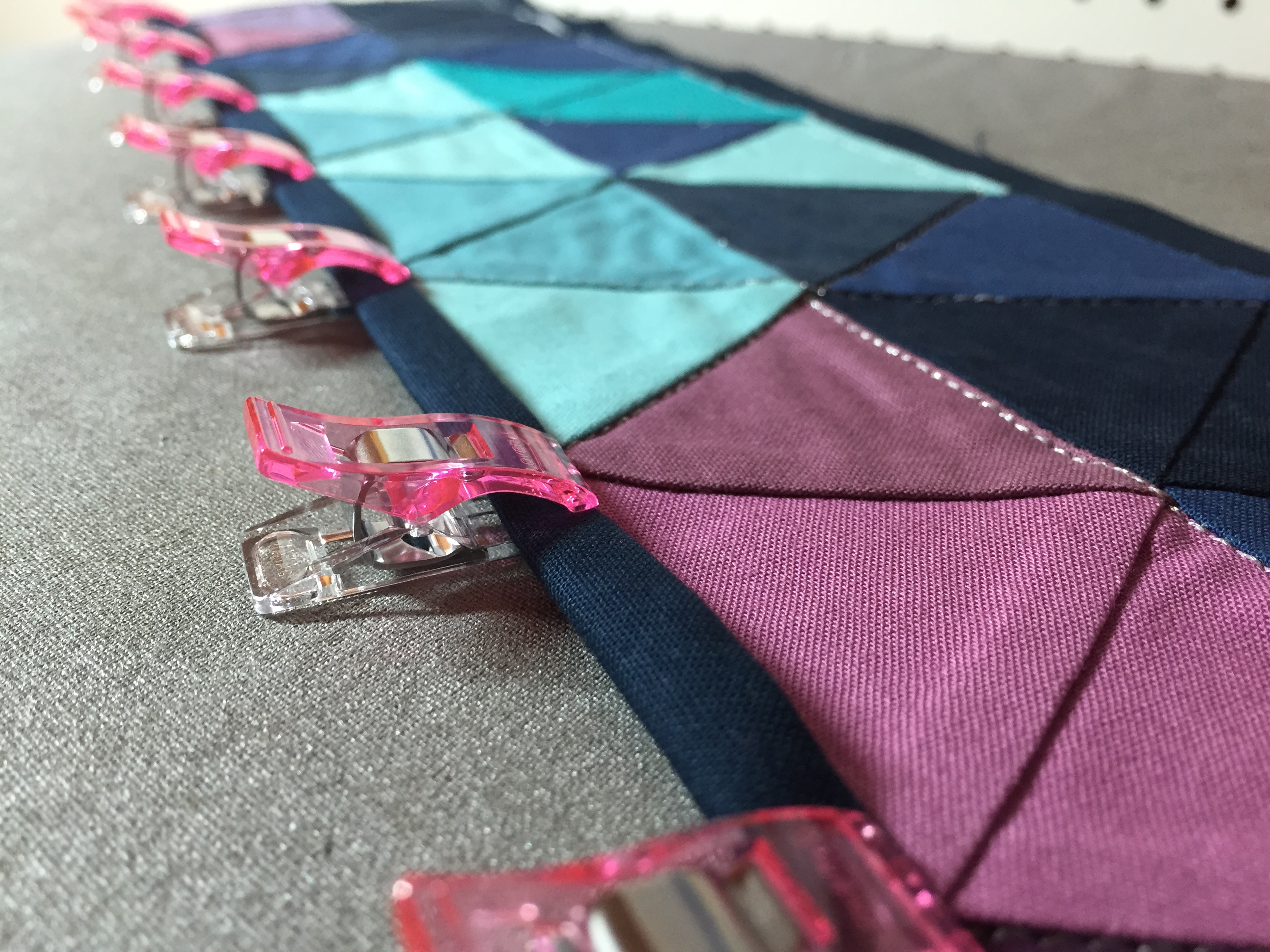 I traditionally tend toward black and grey as my dark contrasting colors, both in quilting and in my own attire. Navy is just so…. eh, navy. Bleh. Boring. BUT, when you take navy and pair it with bright jewel tones like magenta, turquoise, gold, and that perfect shade of grass green, it really shines. It’s not as completely dark as black, so it adds a little bit of color, and I would almost say bright color, although I know that’s going against all color description “rules”. Navy blue as a “bright” color? No way! But just look!