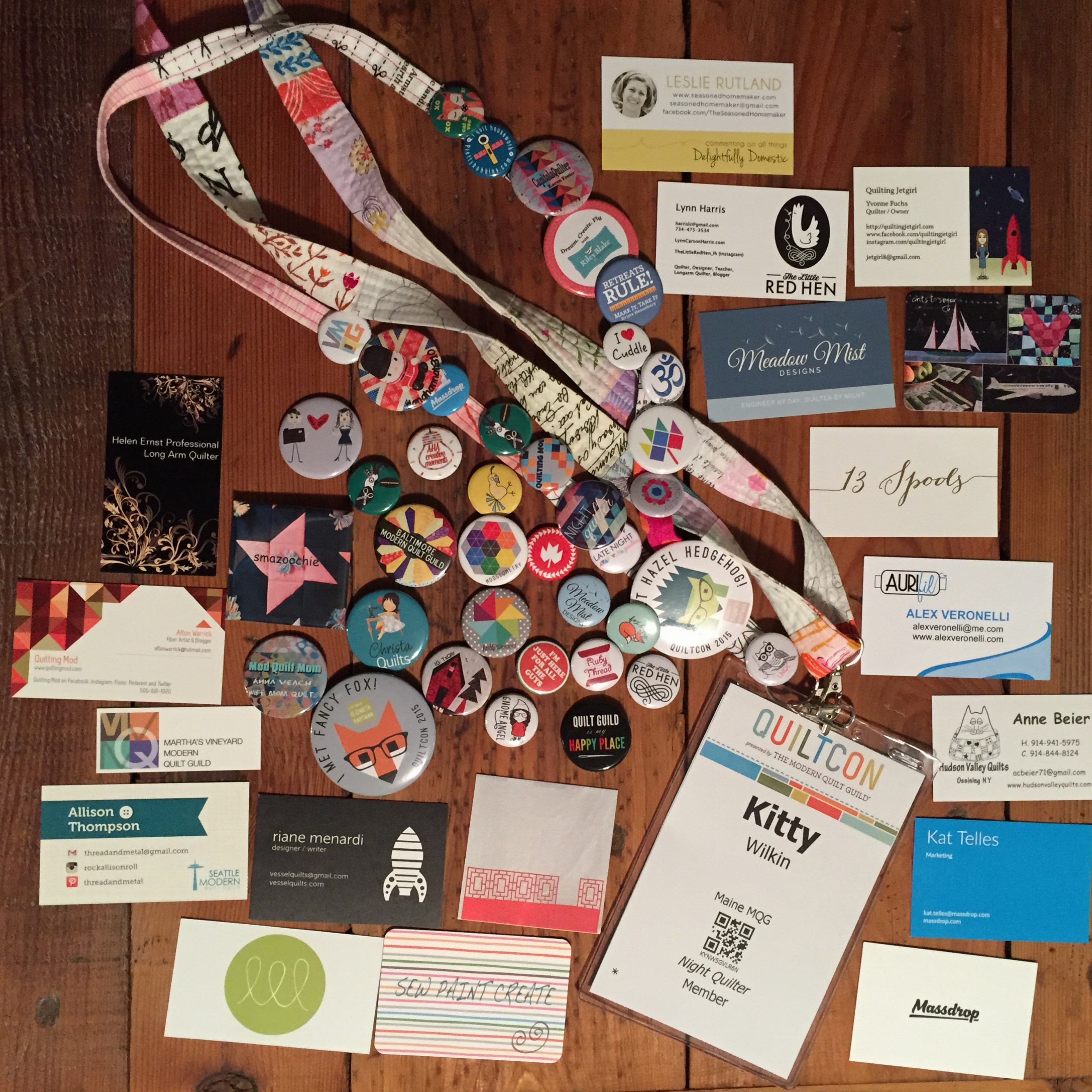 By highlighting these three wonderful women, I in no way wish to downplay the intense joy and excitement I had in meeting all of you quilty bloggers at QuiltCon. I am overwhelmed with emotion at the sheer number of fabulously talented and sweet people I was fortunate to meet and get to know during my week in Austin. Just look at all of these pins and cards! It’s only the tip of the awesome iceberg.