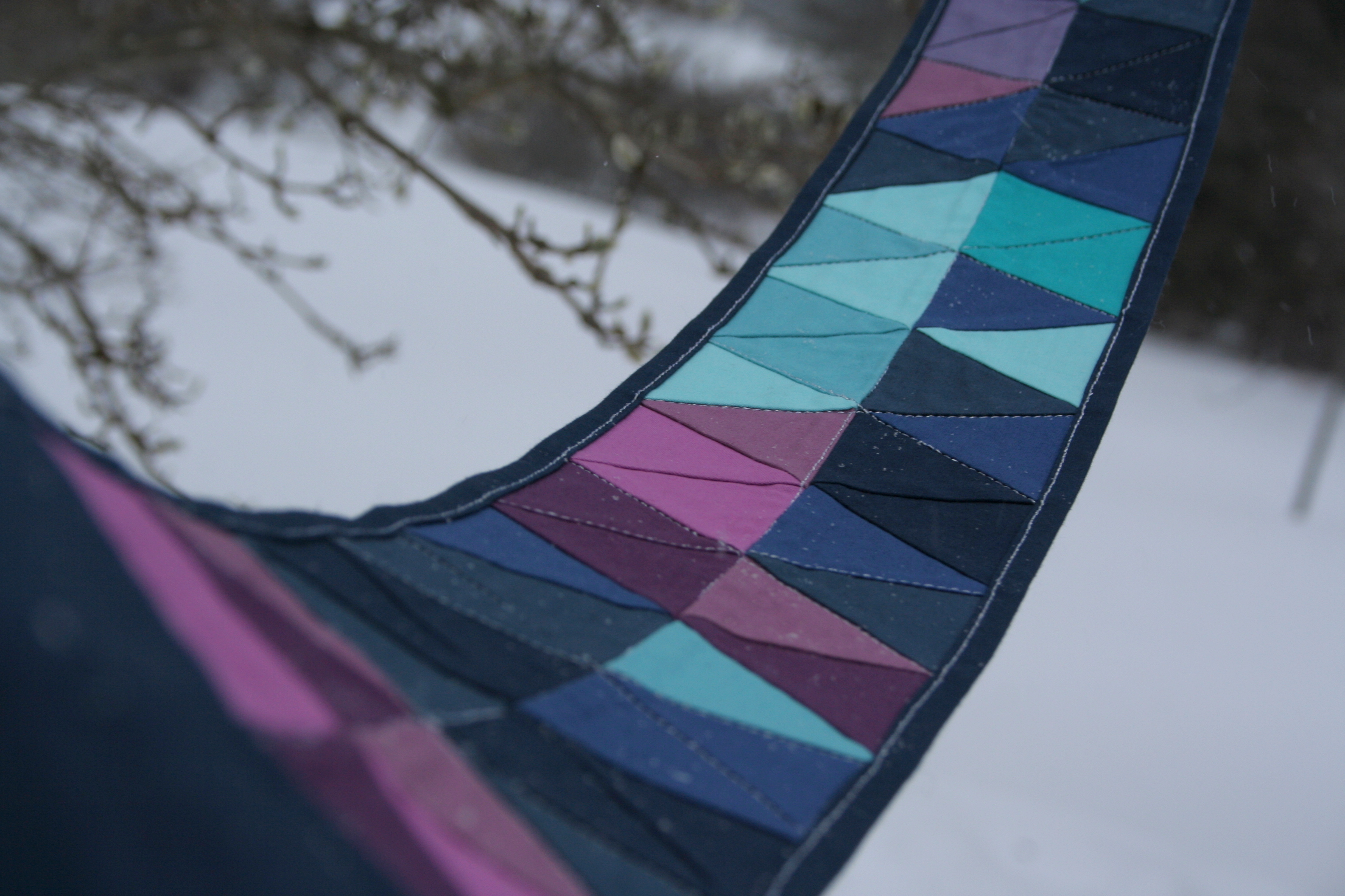 Night Quilter Alter Ego belt in progress.Don’t mind the snow. Of course it’s snowing again. We are getting another 24″ tonight into tomorrow!