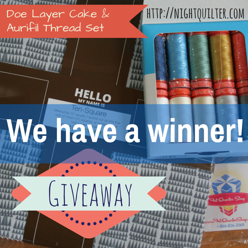 Wow!! I was floored by the response to my Doe & Aurifil giveaway last week in conjunction with the Fat Quarter Shop Layers of Charm quilt blog hop. 354 comments! Thank you all so very much for your kind comments and new follows. I apologize for not being able to reply to everyone. I appreciate every single comment! For those of you who said you wanted to make the same quilt I made–if you do make it, I would LOVE to see it, so please tag me @nightquilter! Now, without further ado, it’s time to announce the winner!