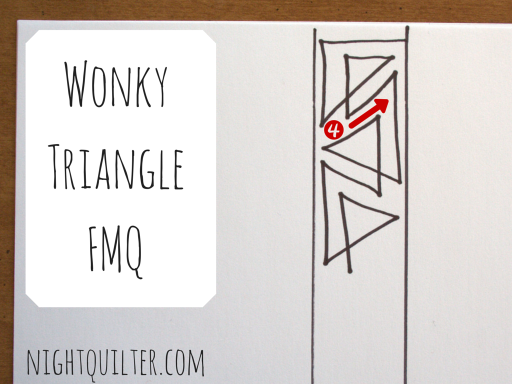 wonky triangle fmq tutorialContinue your triangle quilting, crossing intersections in the same way. Quilt wonky triangles all the way to the end of the sashing.