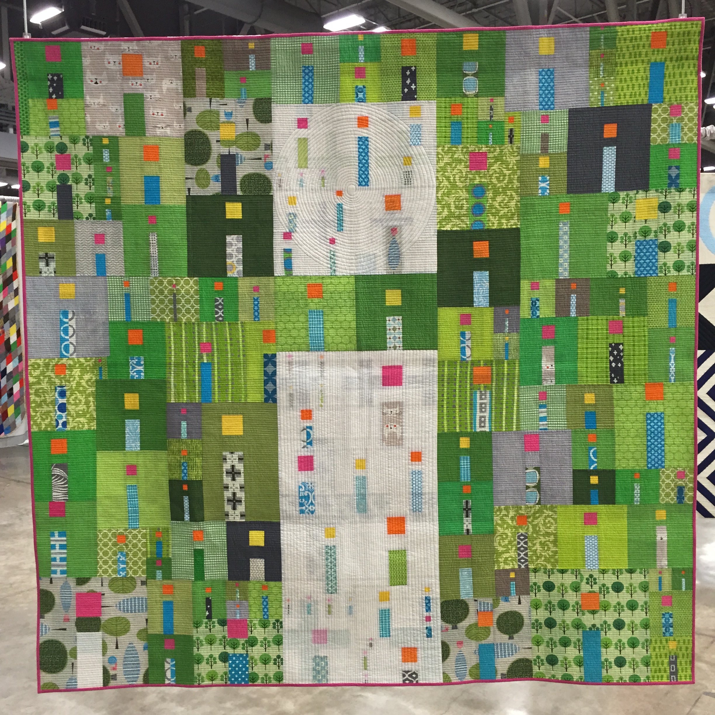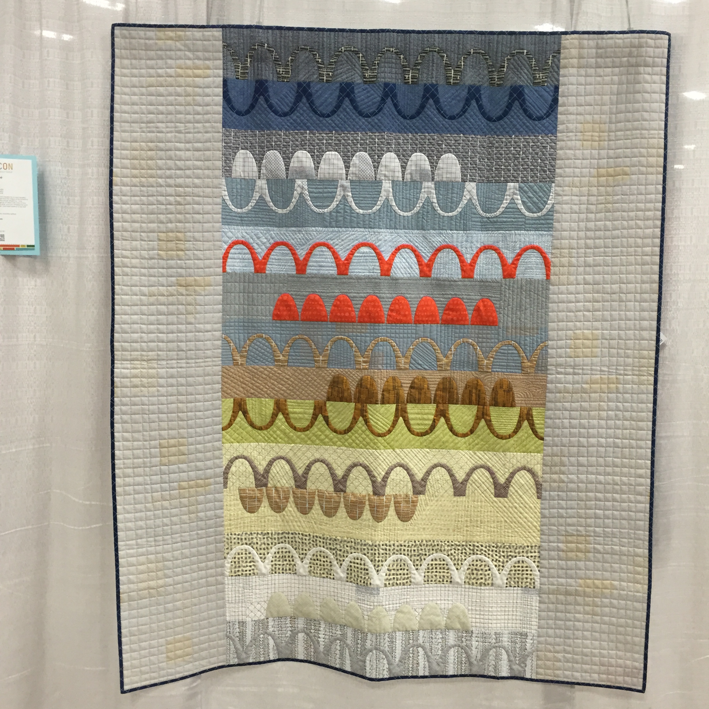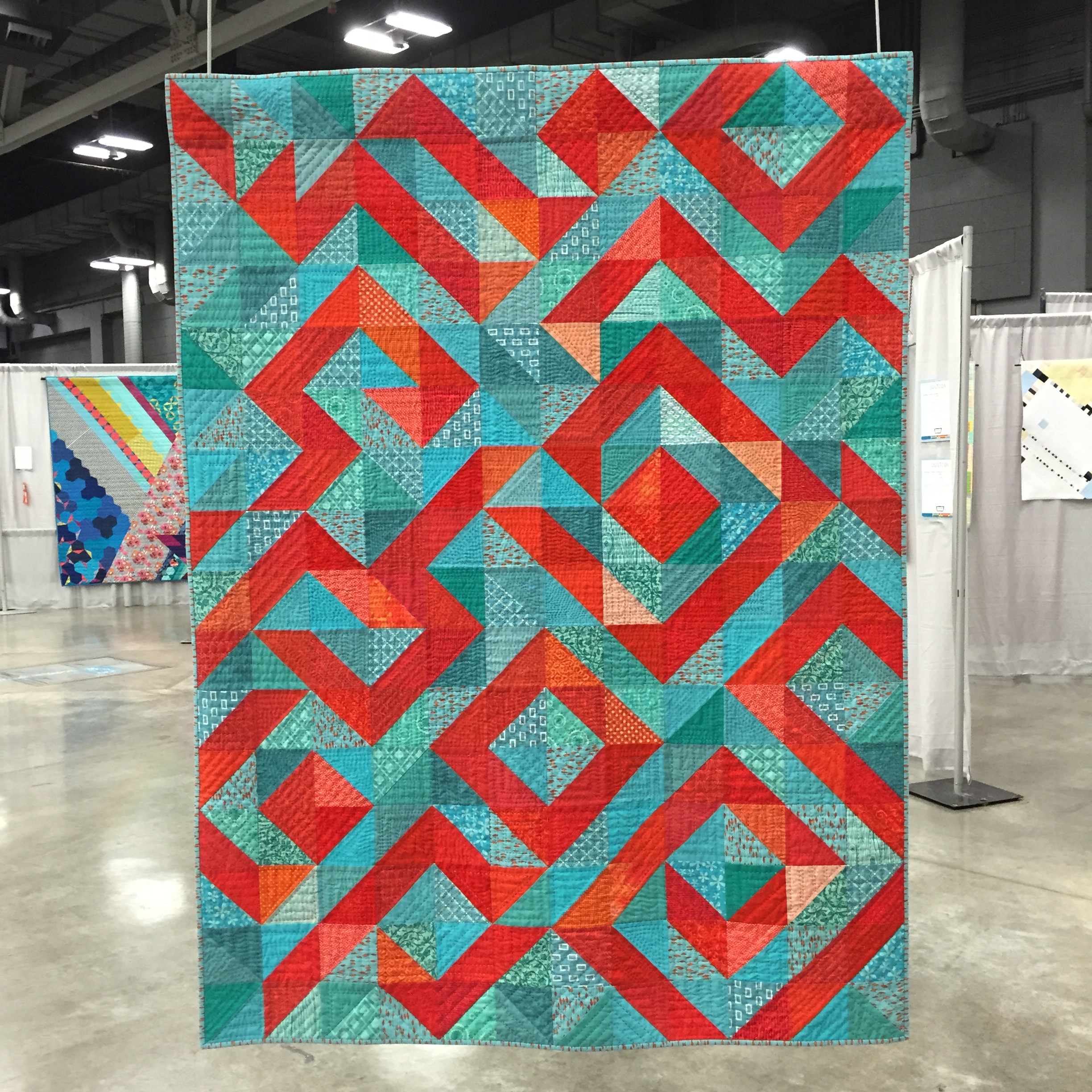 QuiltCon was my first quilt show, and it was an amazing place to begin. Every single quilt was just one more bit of inspiration, and made my brain swirl with possibility. There is a lot of talk about what makes a quilt “modern”, but I think that the quilts hanging at QuiltCon definitely fit the bill, as vague and openly as that “modern” label extends. Being fairly new to quilting, there were quilts where my gut reaction was, “wow, THAT’s a cool idea/technique!”, where I had not even fathomed the possibility of a quilt made in such a way or in such a design. Like I said in earlier posts, I didn’t take nearly as many photos at QuiltCon as I would have liked, so here is just a collection of a few of my favorites. Click here to see most of the quilts from the show, care of Sew Mama Sew.