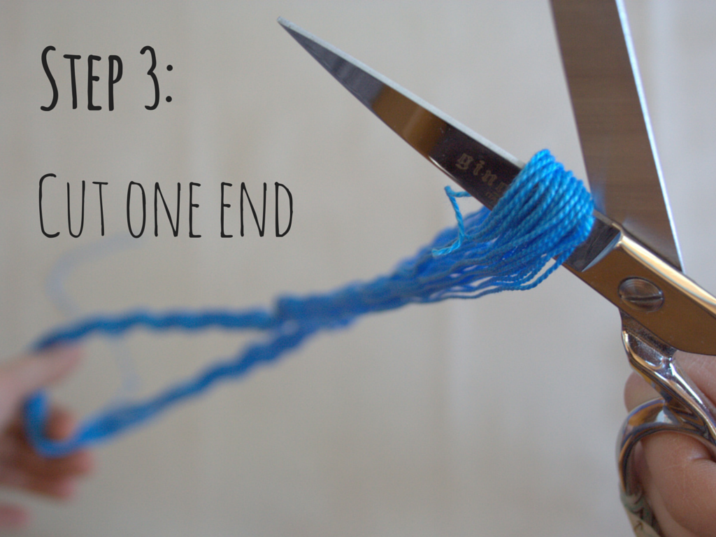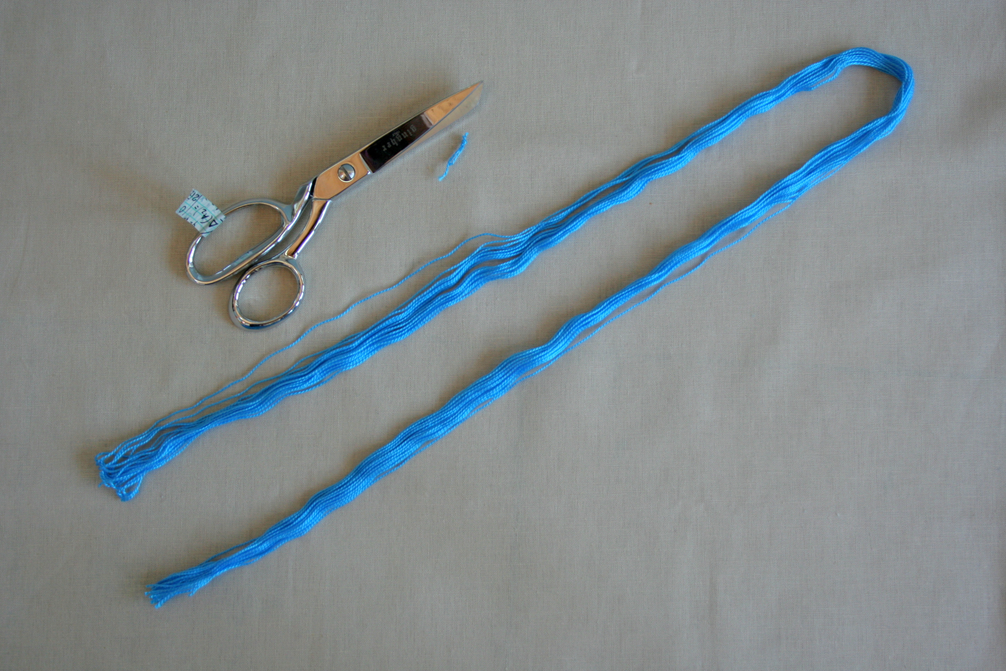 Step 3- Cut one endCut one end, cutting through all of the embroidery floss strands.
