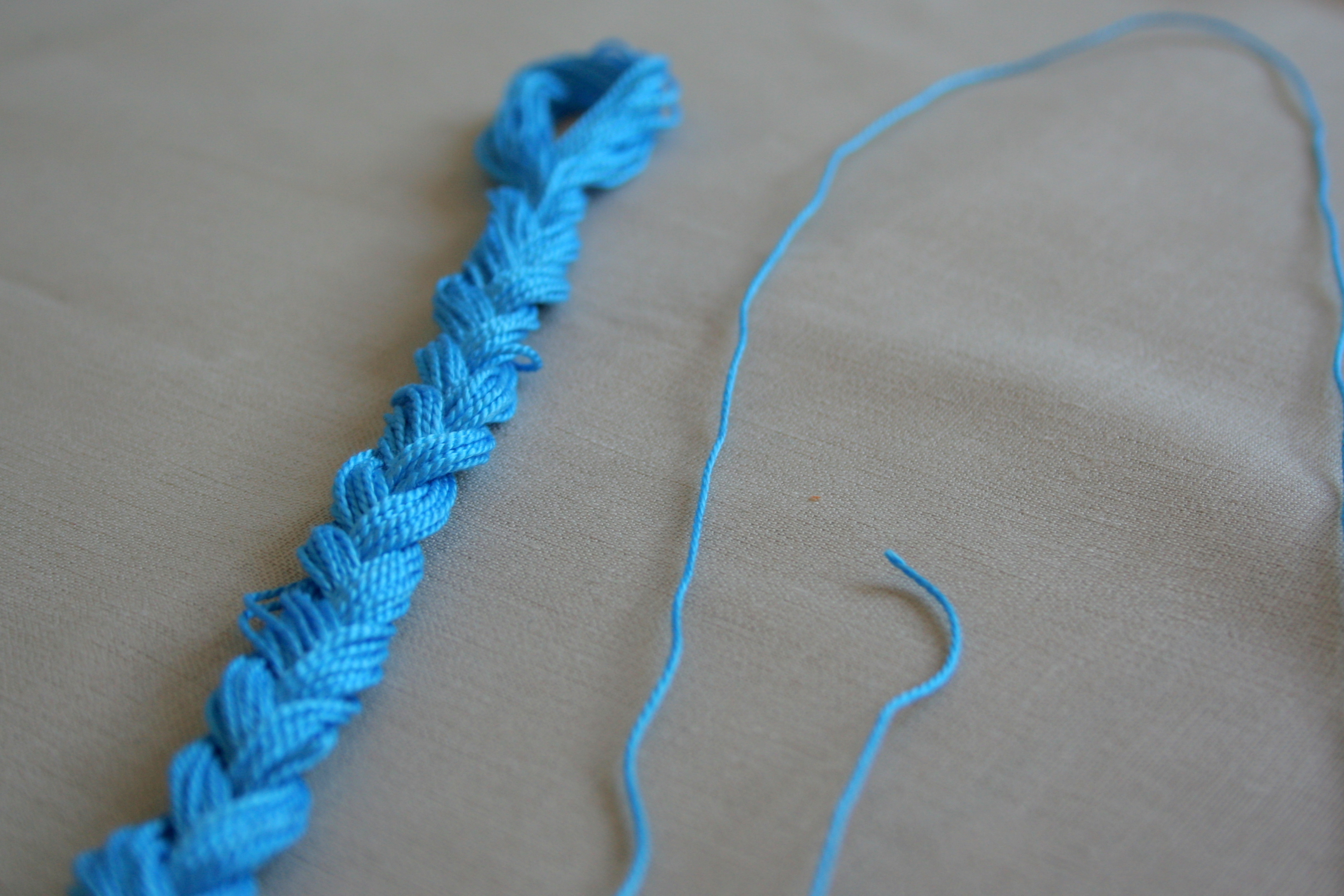 Go ahead and braid all of your other skeins of floss, and you will never have a tangled pile of embroidery floss again!Rainbow embroidery floss braids