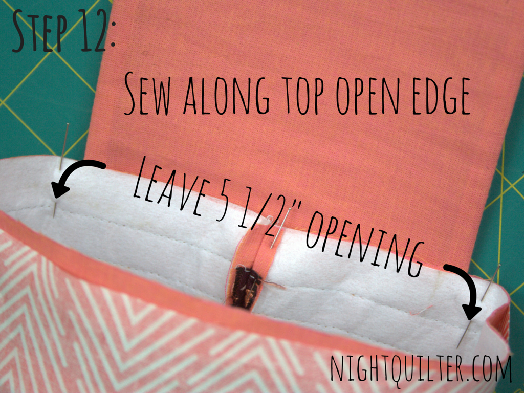 ribbon thread catch tutorialPin in place and sew along top open edge, leaving an opening at least 5.5″ wide along the back panel (you can use your thread catch base and hanging tab to make sure there is enough space, but remove it before sewing. I found that it was easiest to sew together with the outside facing up.) Backstitch at the start and finish of your stitching to hold stitches during turning.