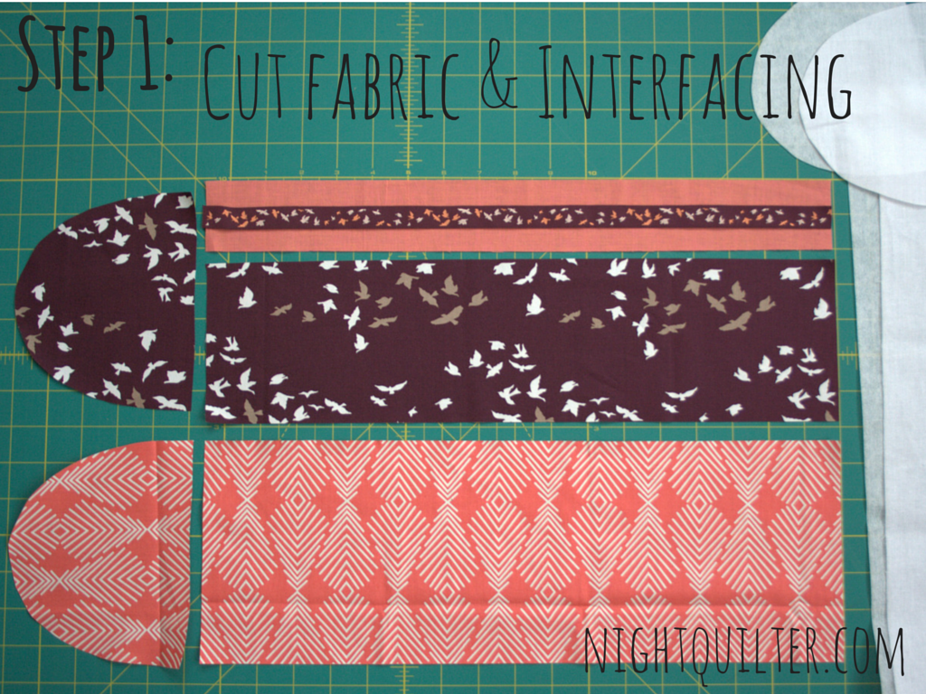 Please read all of the instructions before cutting. There are some time saving tips for working with interfacing in the “making the base and hanging tab” section.