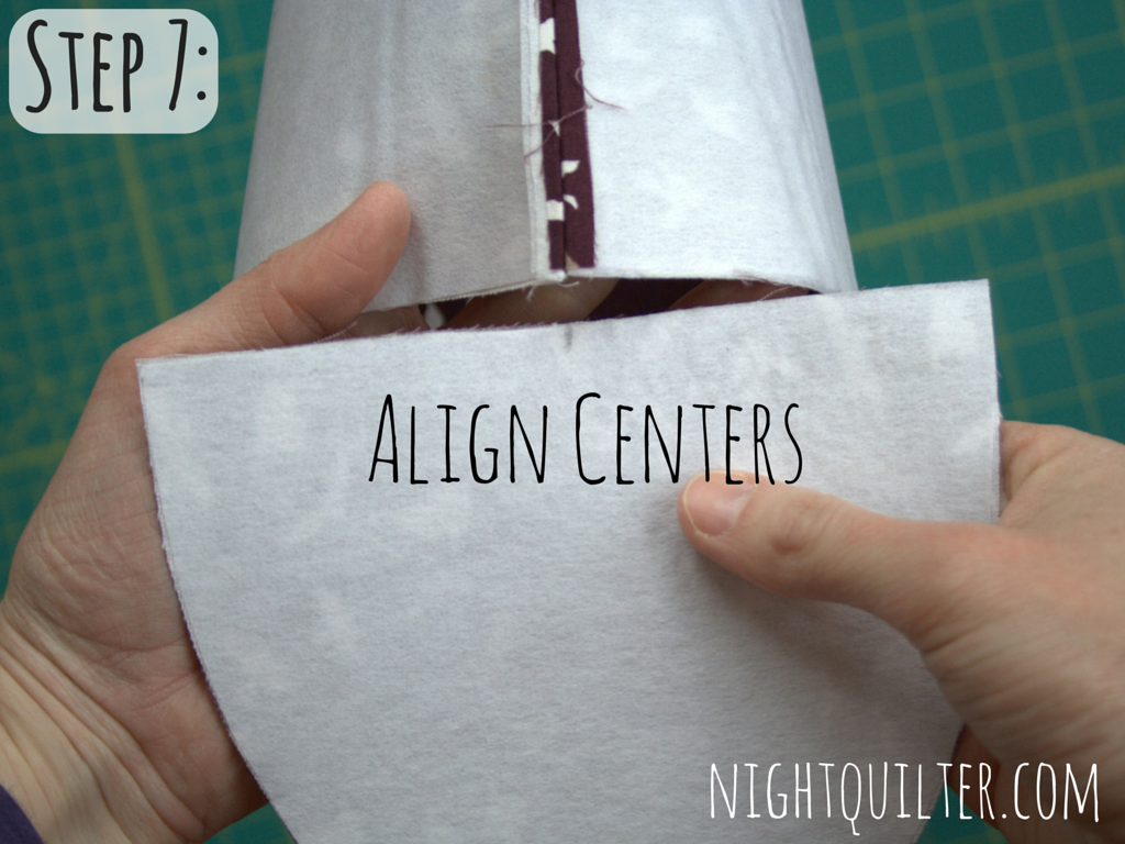 Turn outer thread catch body right side out. Slip the lining over the outer thread catch body, aligning raw edges, right sides together. Line up the center seams and back panels.