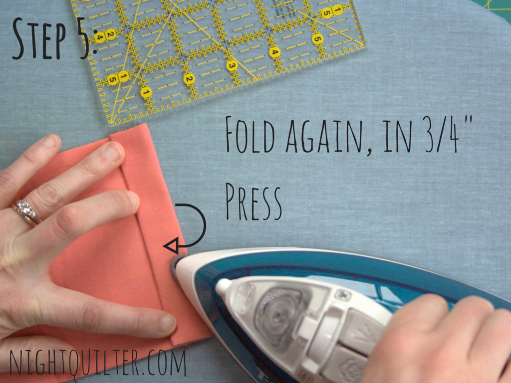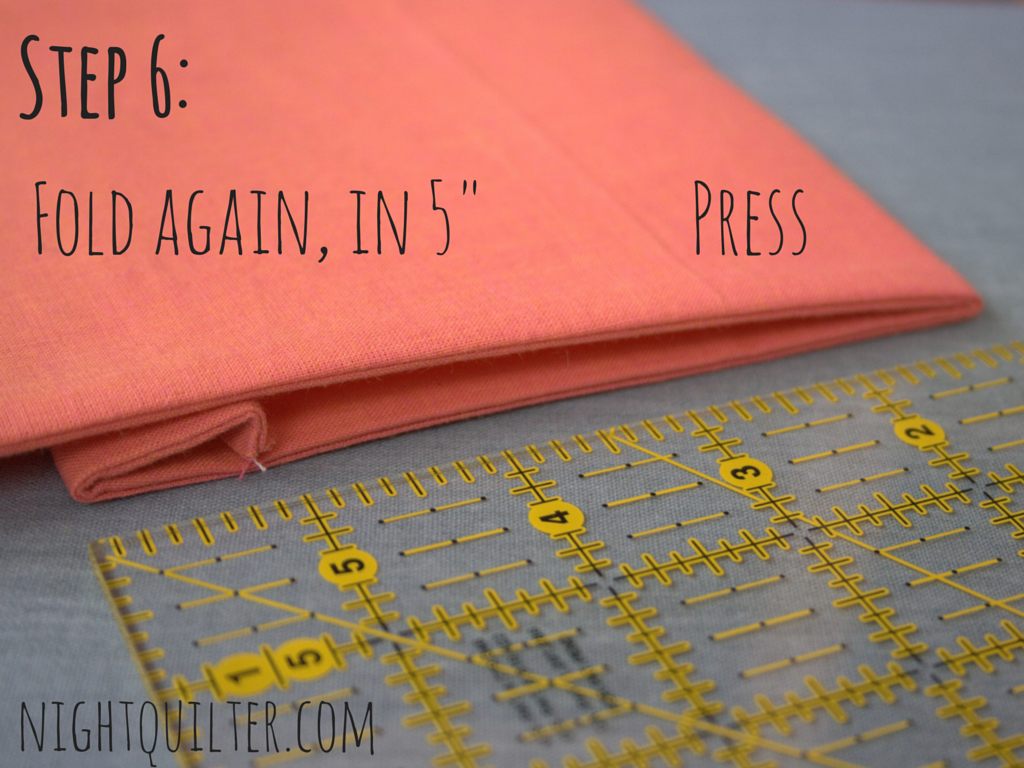 thread catch tutorial base and hanging tab stepFold long end 5″ from pressed edge, over on top of itself. Press.
