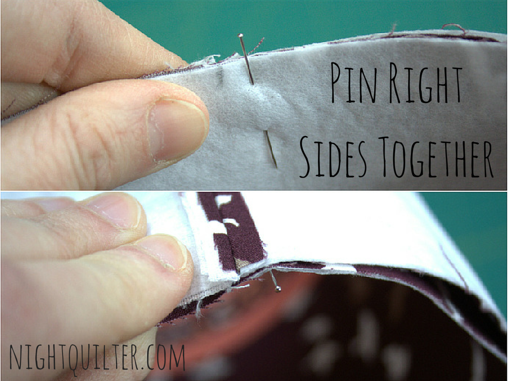 thread catch tutorialRight sides together, sew short ends of the outer panel together. Be sure to line up the ribbon and seams, pinning right next to the join for accuracy. Press seam open.