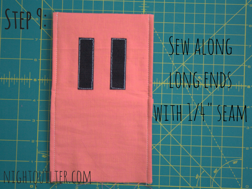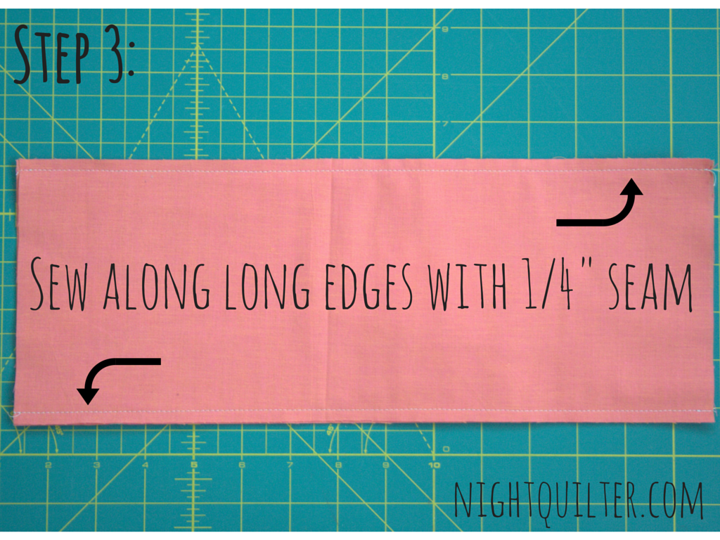 step three thread catch tutorial base and hanging tabWith right sides facing (interfacing out), sew along long sides with a 1/4″ seam. Set seams, turn right side out, press.