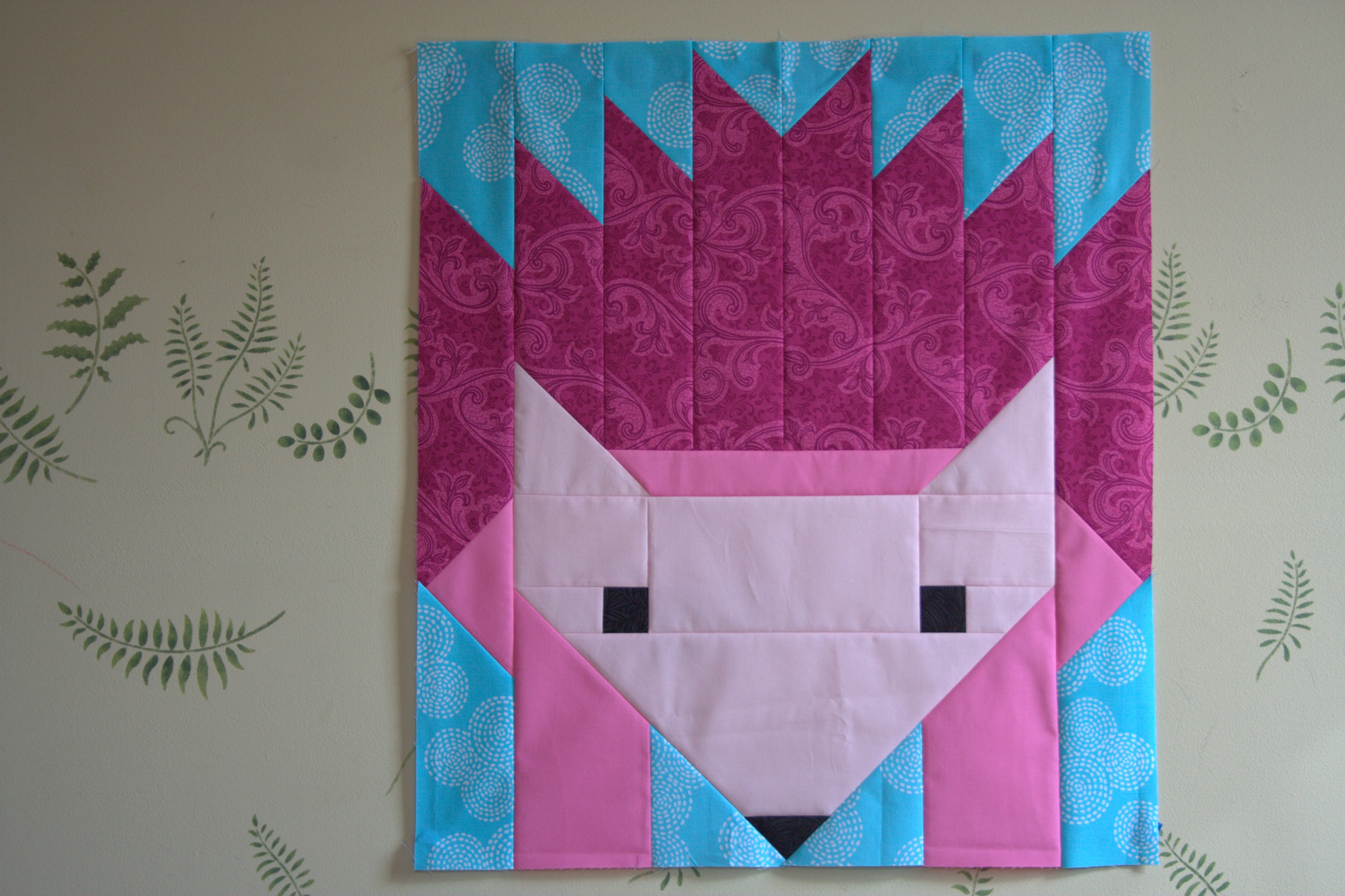 My pink-loving sister-in-law is having a baby girl in June. When I say she’s pink-loving, note that that is a dire understatement. I mean, she loves pink. Pink on pink on pink with an accent of pink is her signature style. As a long-time pink avoider who is just recently embracing the joy that pink conveys, I am planning to work a *little* out of my comfort zone for the sake of making a quilt for her baby girl that she will love. I’m making a pinkalicious Hazel Hedgehog baby quilt, with one giant sized super-pink Hazel.