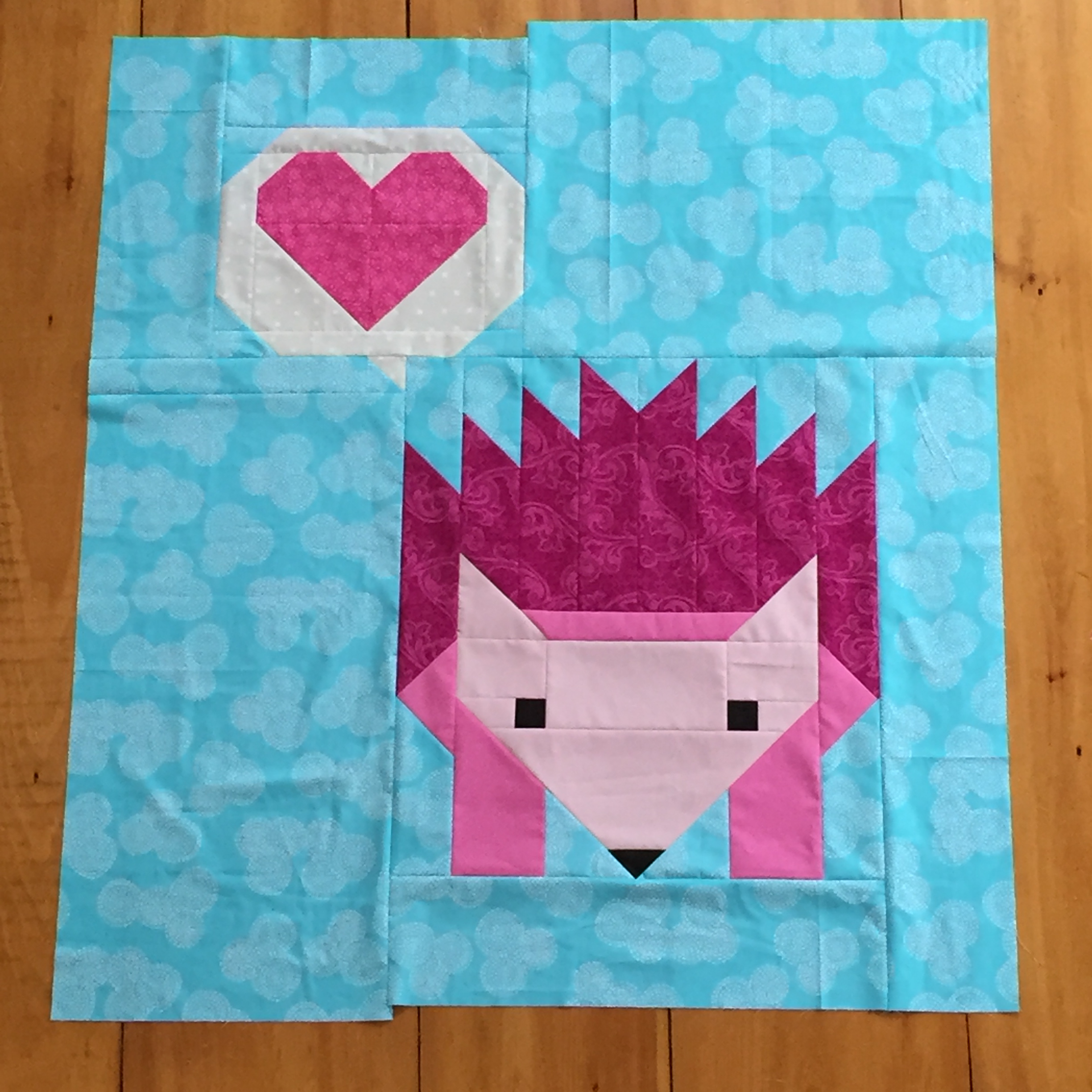 Hazel Hedgehog “Hello, Love” baby quilt flimsy finish.