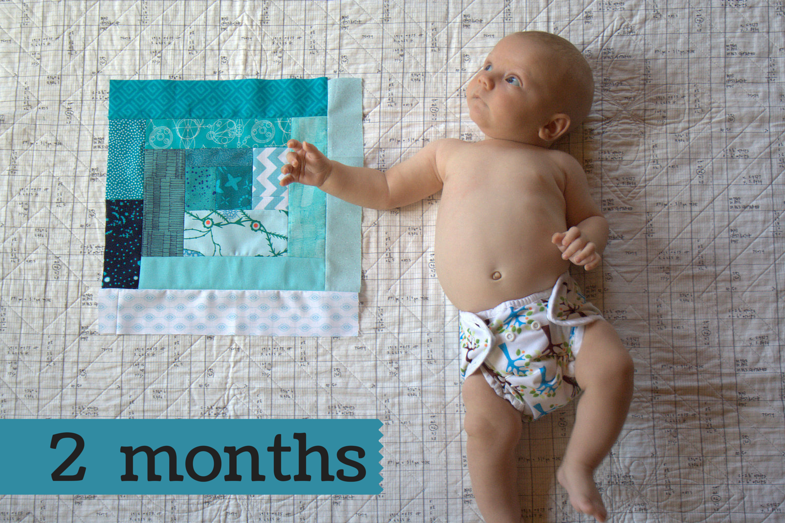 While that first month seemed to last so long, with days and nights filled with slow baby snuggles, the second month flew by as we returned to our daily routine. My baby is two months old! With a bit over 20 minutes of sewing time (#sewtake20!) his second monthly quilt block is finished.