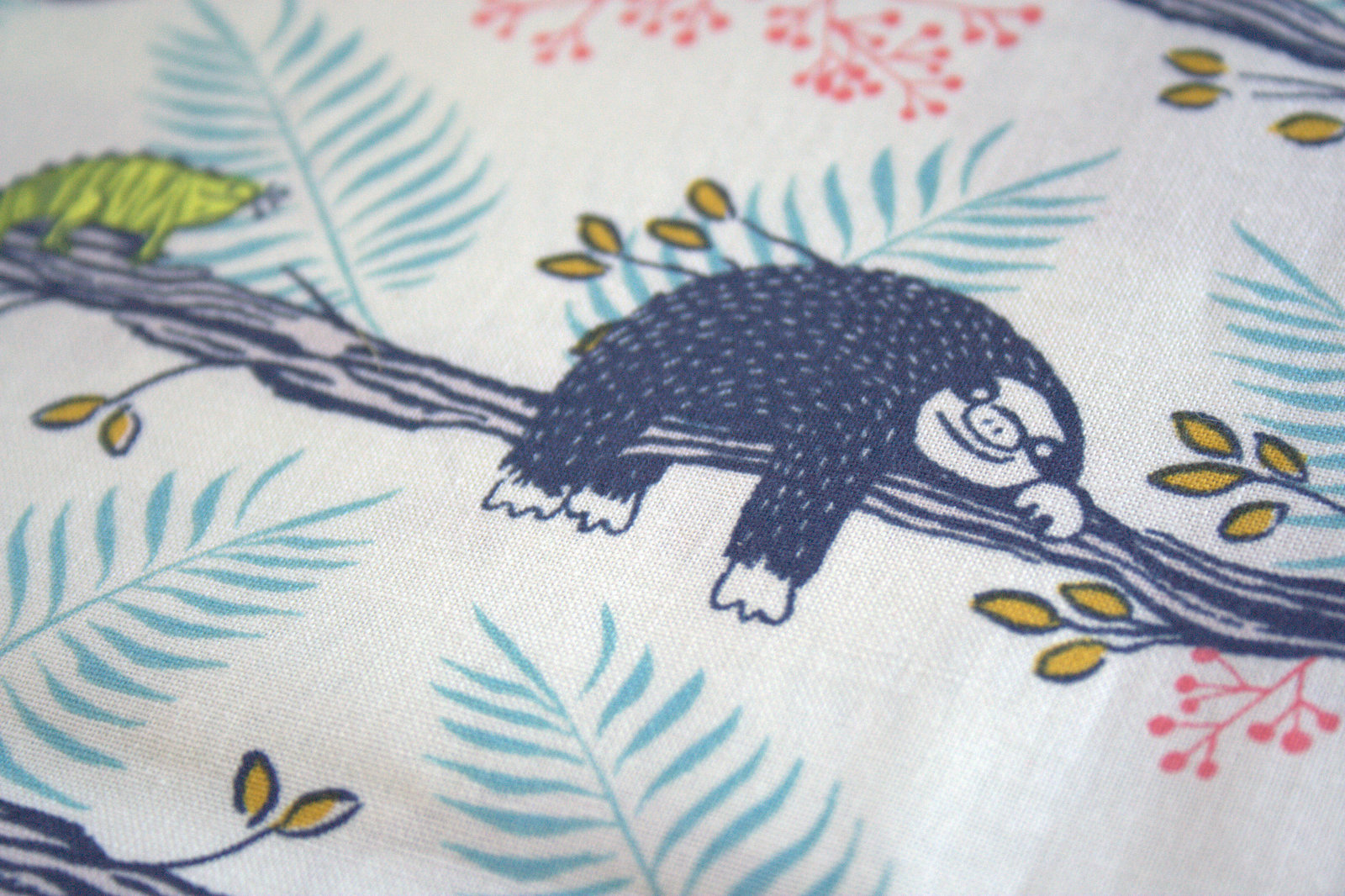 Finally, these sloths!! Seriously, how could I NOT buy some of this fabric?! This is the epic sloth fabric, Sketches & Memories from Costa Rica from Honeymoon by Sarah Watts for Cotton & Steel. I bought 1/2 yard of this fabric from Fiddlehead Artisan Supply‘s booth at Maine Quilts. I don’t know what I’m going to make with it yet, but I just couldn’t resist. I surely will need to buy more, and might make a sloth bag just so that I can tote these guys around everywhere.