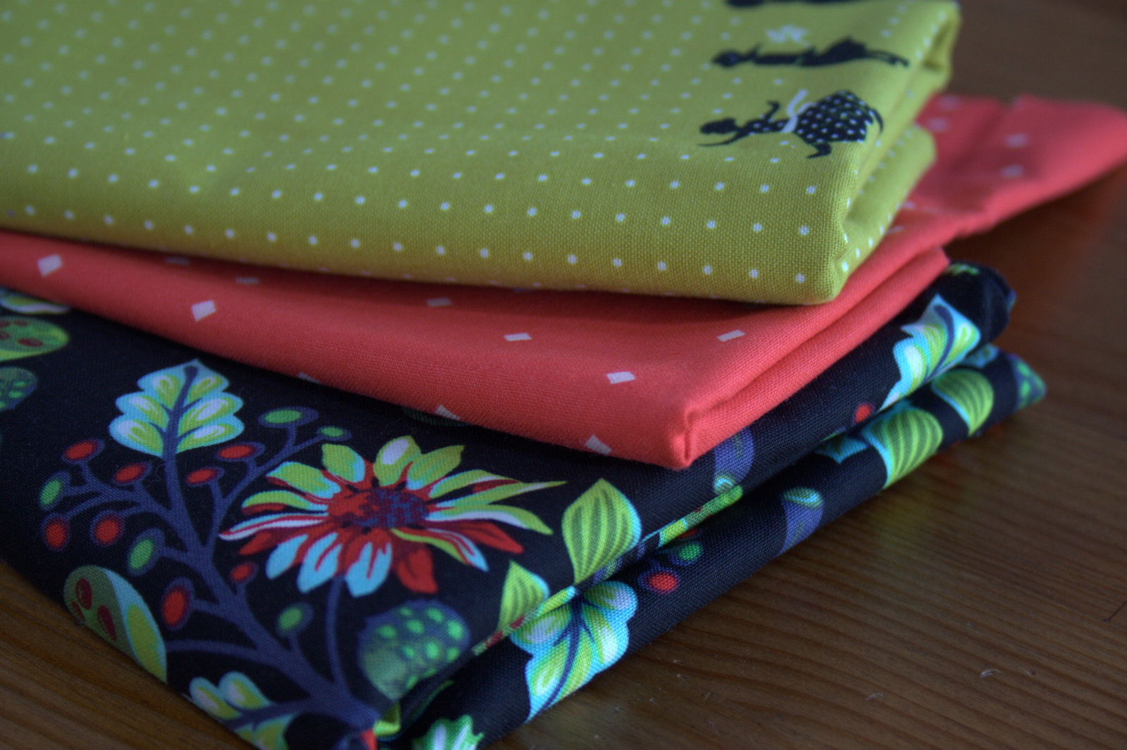 These first three fabrics were purchased from Alewives Fabrics, and are intended to work together in a currently unplanned future EPP project. From top to bottom, I bought: