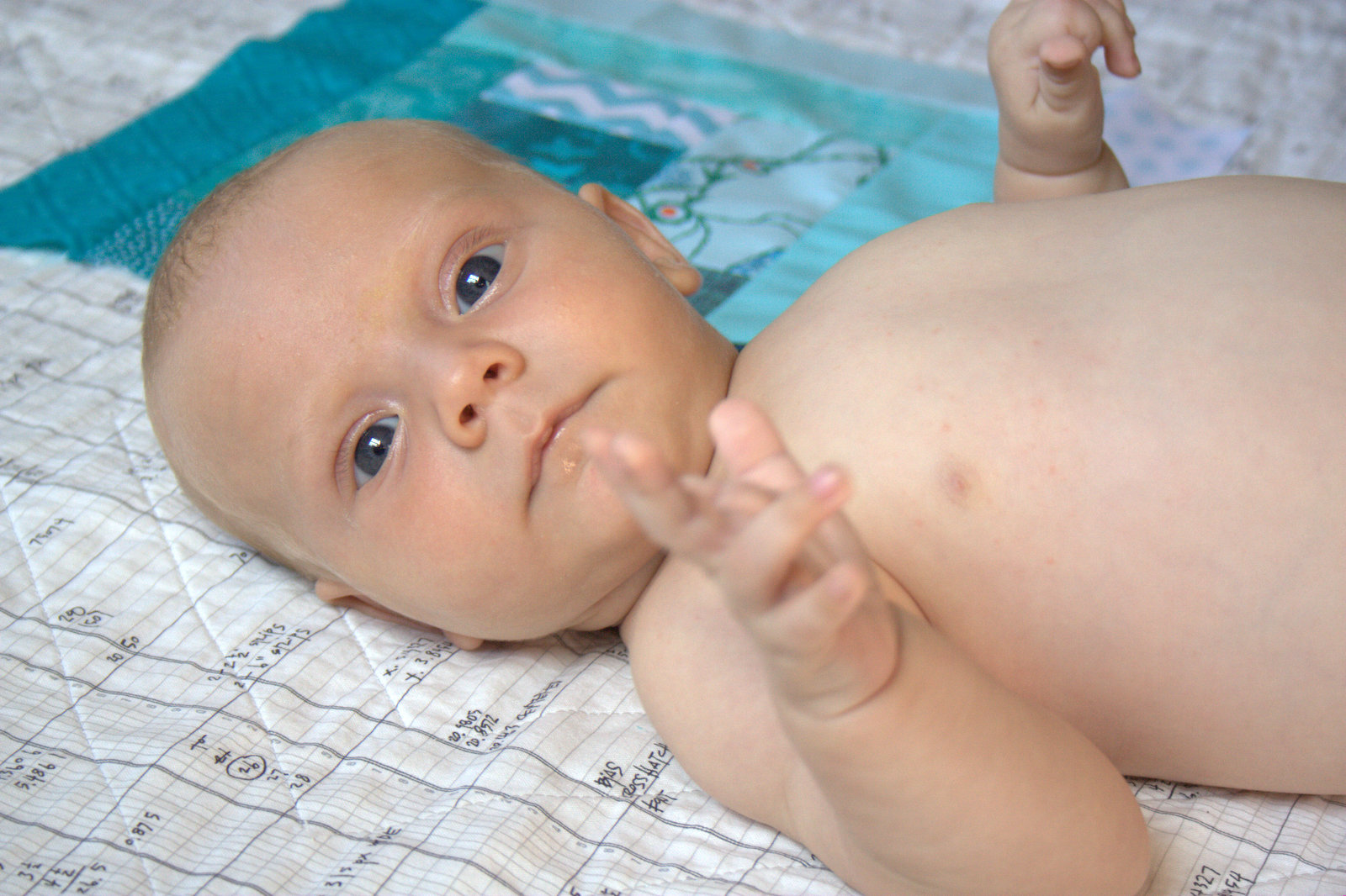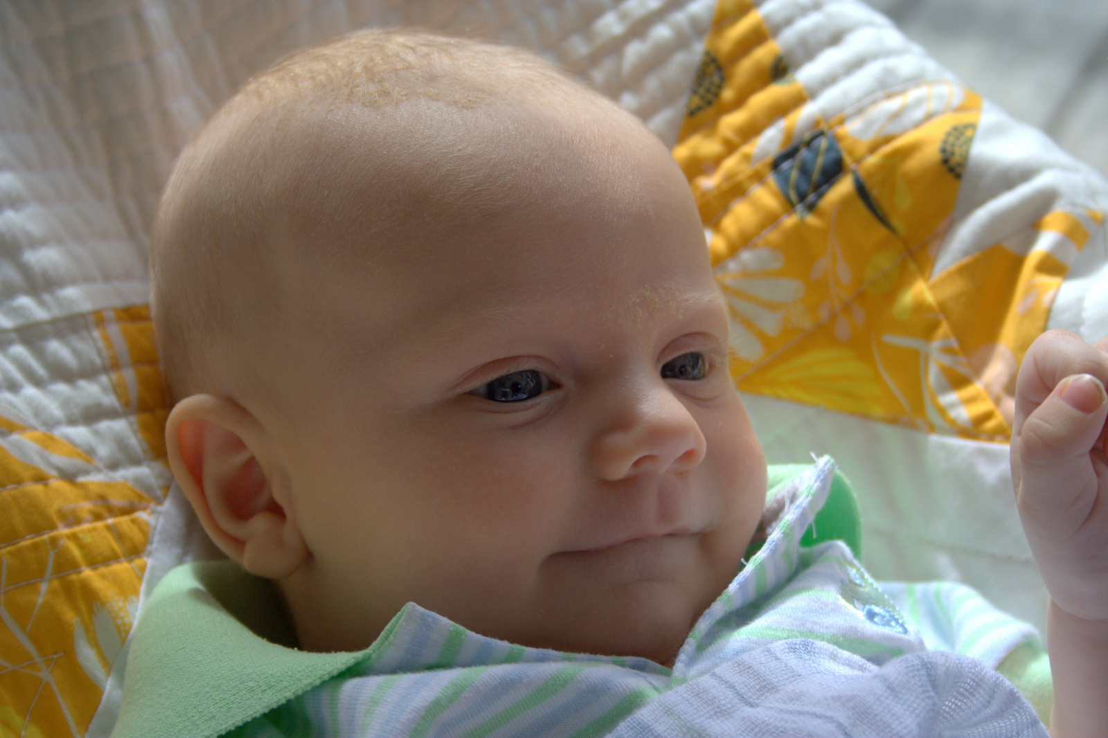 I am blessed beyond belief with this boy. He has such a peaceful demeanor, and as soon as he hit one month old, he was all smiles. He is so very interested in the world around him, and I love having “conversations” with him. After three children, I have mastered the art of the one-sided conversation, and I truly love the baby babble and expressions I get in return.