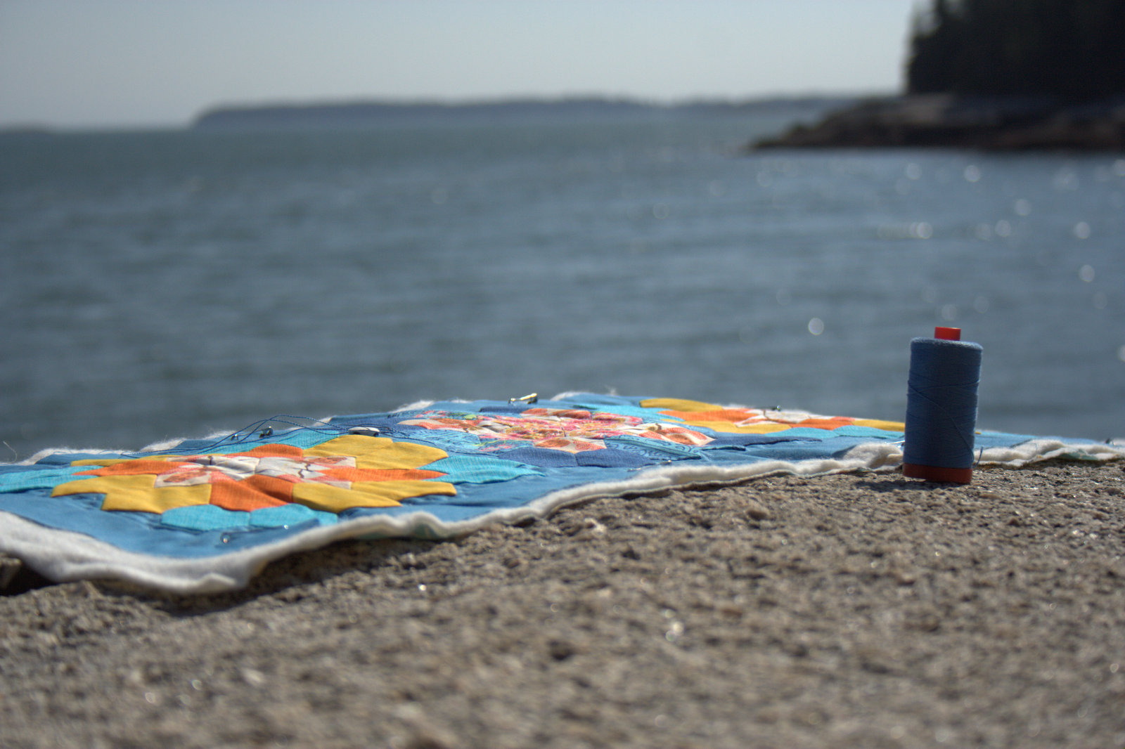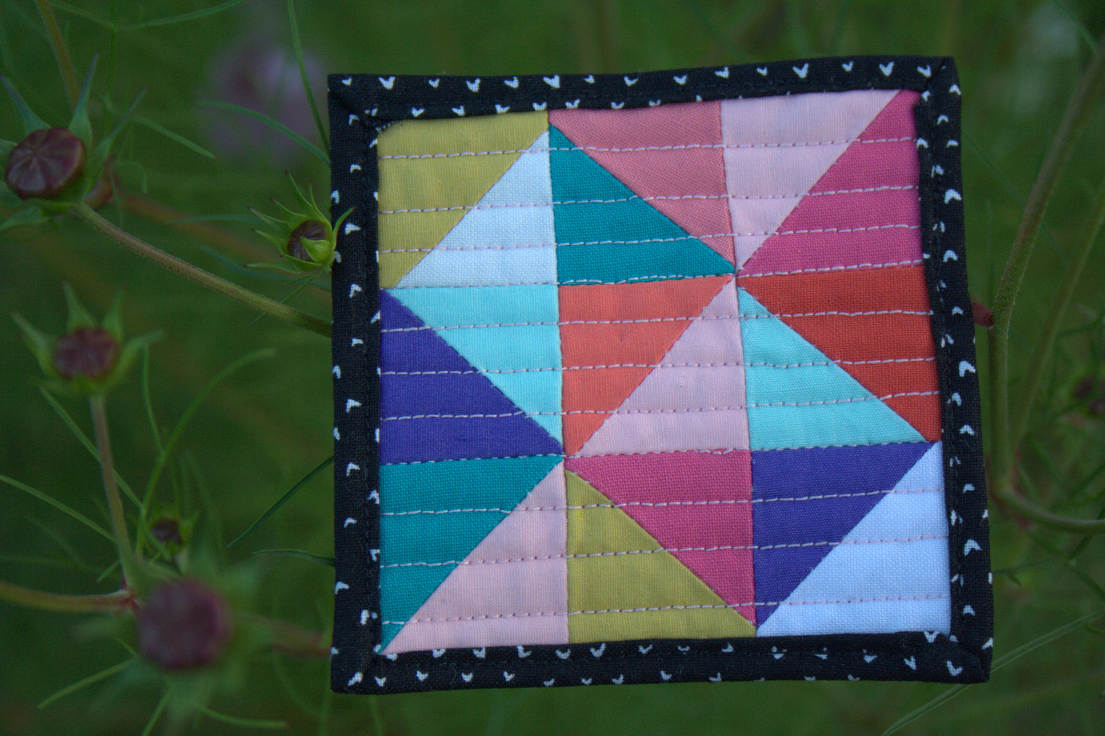 Once all of your pieces are basted, it’s time to start stitching them together! I made a set of four (4) coasters, but you can make as few or as many as you want.