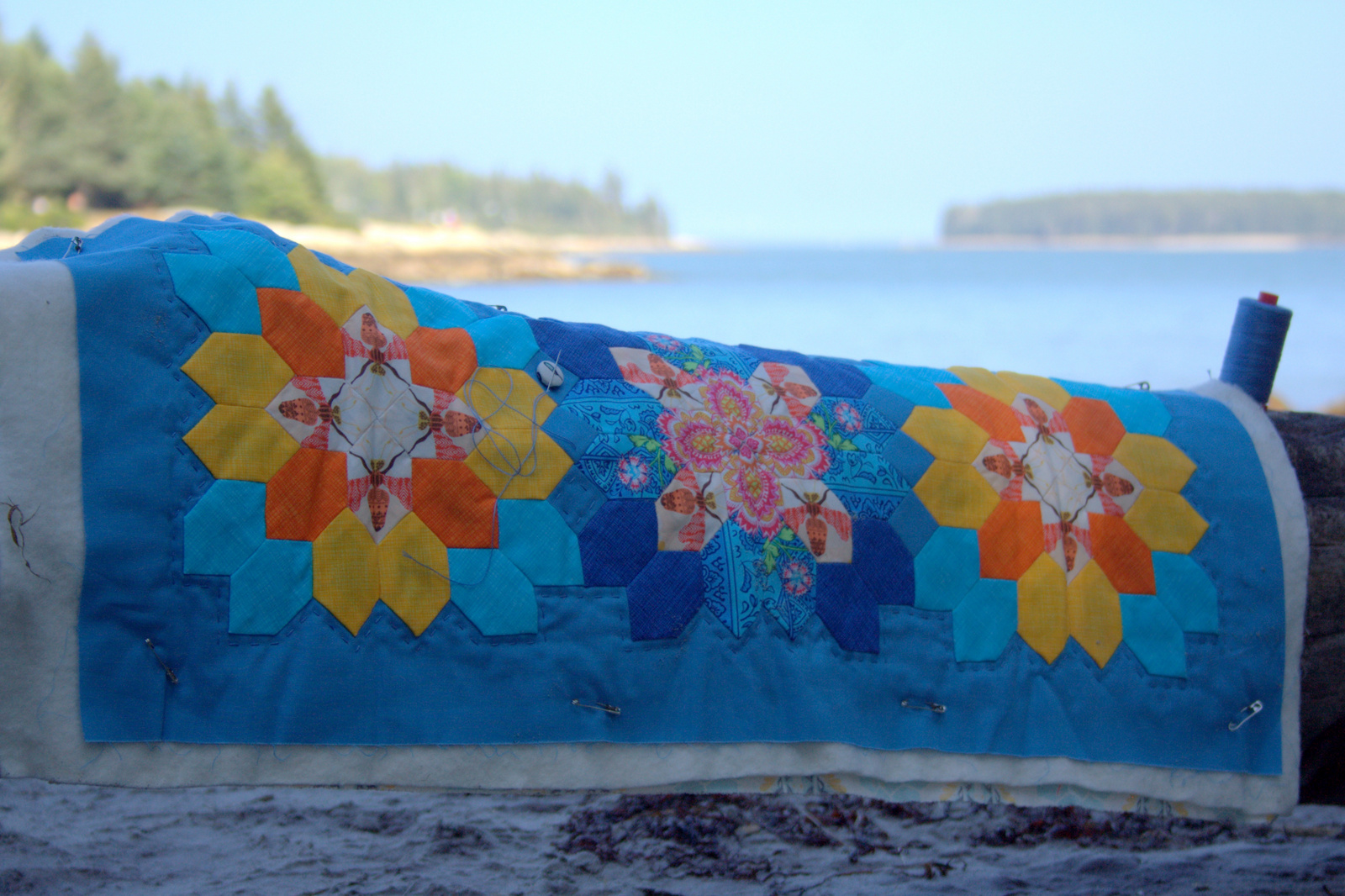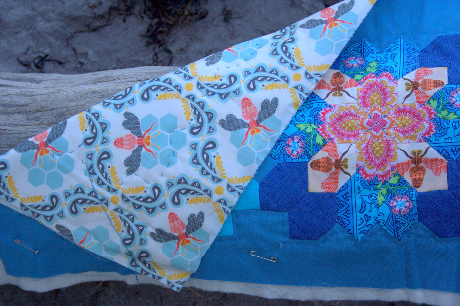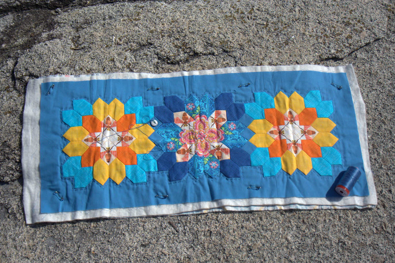 You can also add additional quilting if desired and for added durability. I added a top stitched hexagon about 1/8th inch from the edge of the inner hexagon mirroring the outer edge stitches.