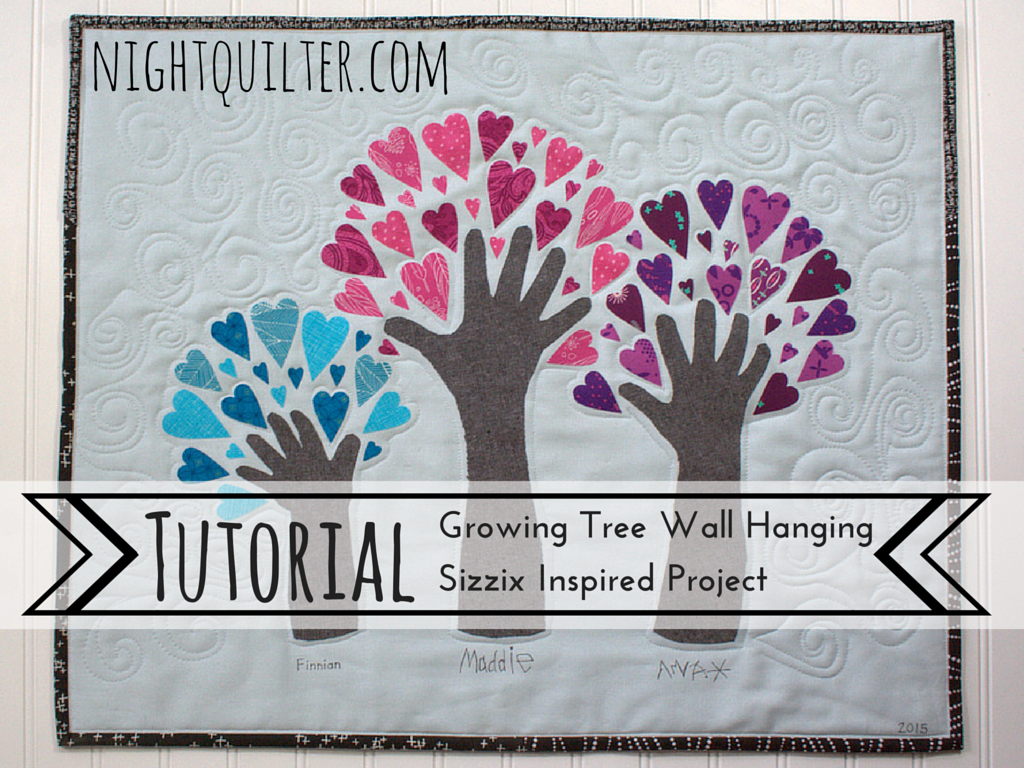 Trim the batting and backing flush with the quilt top, square up, and bind as desired. I included corner hang tabs on the back of my Growing Tree Grove using THIS method, and bound the quilt using THIS great tutorial by Cluck Cluck Sew.