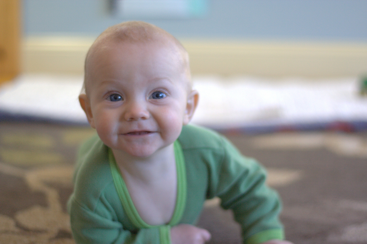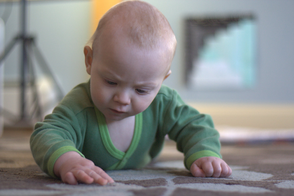 …until he got distracted by a design in the carpet. He is also really working on his fine motor skills, trying to grab tiny bits off the carpet and floors. I love watching his little mind at work. Babies are amazing; they learn so much so quickly!