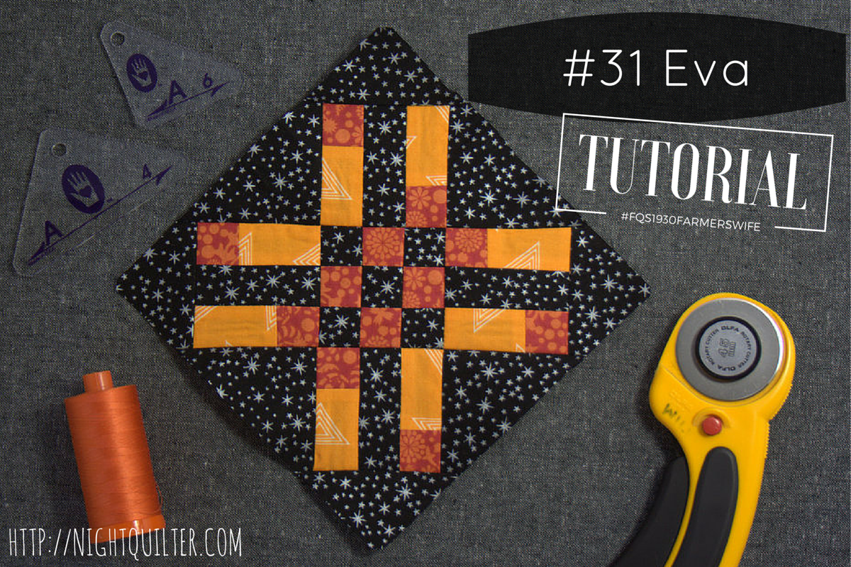 As with Autumn, a first look at block 31 Eva may cause you to balk: 37 pieces in one 6″ block, and many of them are tiny squares!? But with a creative look at the block construction, Eva can come together smoothly and without too many teeny pieces. This sew along continues to show me that there is nearly always a faster and easier way to approach block construction than purely cutting out all of the pieces and sewing them together. With a few shortcuts and piecing tricks, Eva comes together quite smoothly. In this tutorial, I’ll show you how to use strip piecing to save a bit of time and create larger, more manageable pieces, and fill in the gaps using Marti Michell templates (Set A) or rotary cutting to help make putting Eva together smooth and enjoyable.