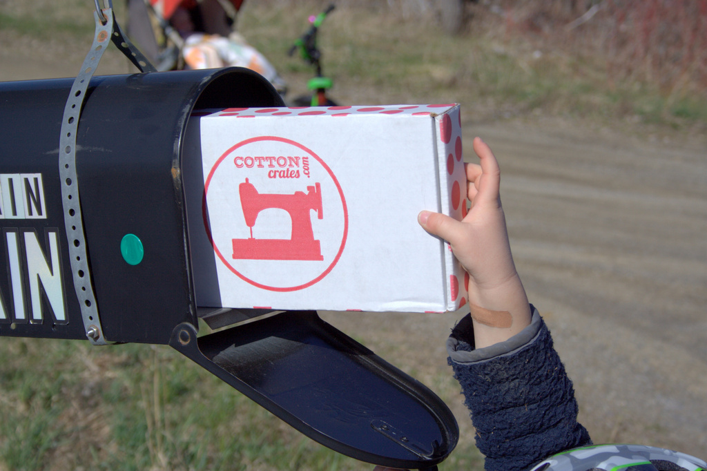 Let me tell you about my Cotton Crates experience. There’s something that comes from having a mystery box arriving in the mail that has a different feel than when fabric you specifically selected and purchased is delivered. Yes, any online fabric purchases arrive in your mailbox, but the cotton crates box held a bit of mystery that made the whole experience more exciting. My kids take turns getting the mail, and on this particular day it was my son Max’s turn. As soon as he opened the mailbox and saw the package he excitedly said, “Is it for me!?” I had to contain my glee when I said, “No, this one is for Mommy.”