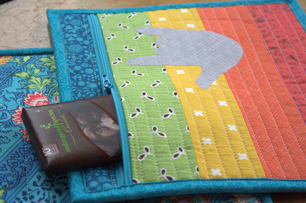 The construction of the bags is brilliant, since the lining and the outer panels are quilted together and then simply sewn together and bound–so easy! I definitely will be going back to this pattern for future gifts, and I’m thinking of making a few more to stash coloring supplies for my kids in my purse for when extra entertainment is needed.