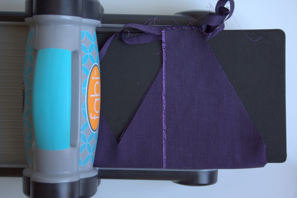 I used my Sizzix Fabi and BigZ Triangle, Equilateral 4 3/4″ x 5 1/2″ unfinished die to speed up the cutting process.