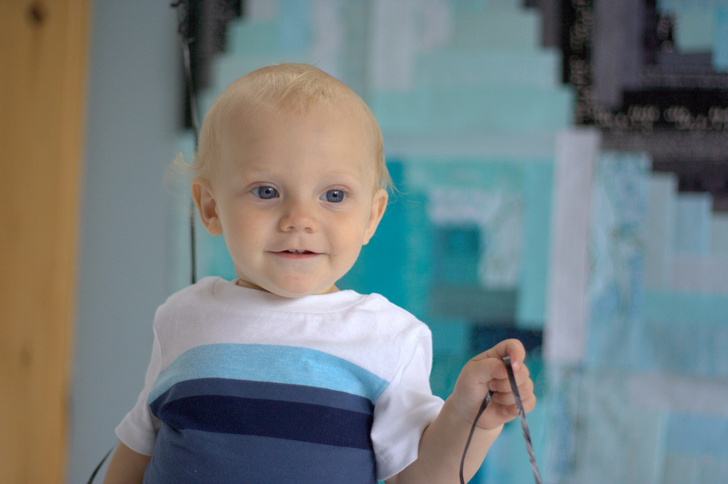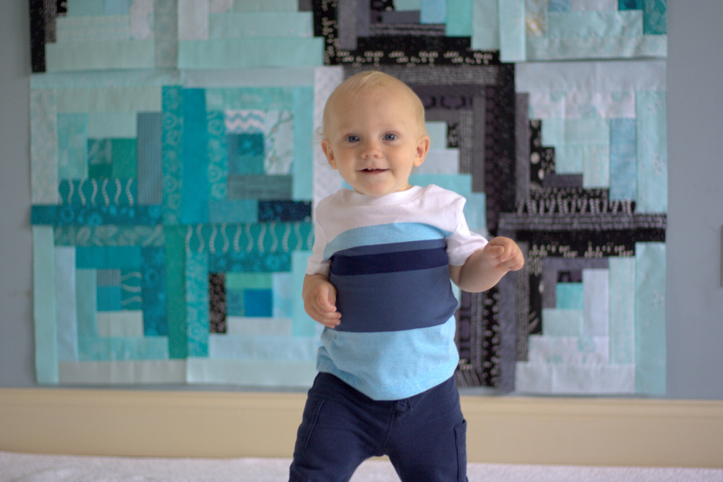 Twelve months is 12 months, and not even mommy’s most sincere and pleading attempts will keep a newfound walker from walk, walk, walking! Just as a reminder, here is Finn with his very first milestone quilt block, 11 long months ago: