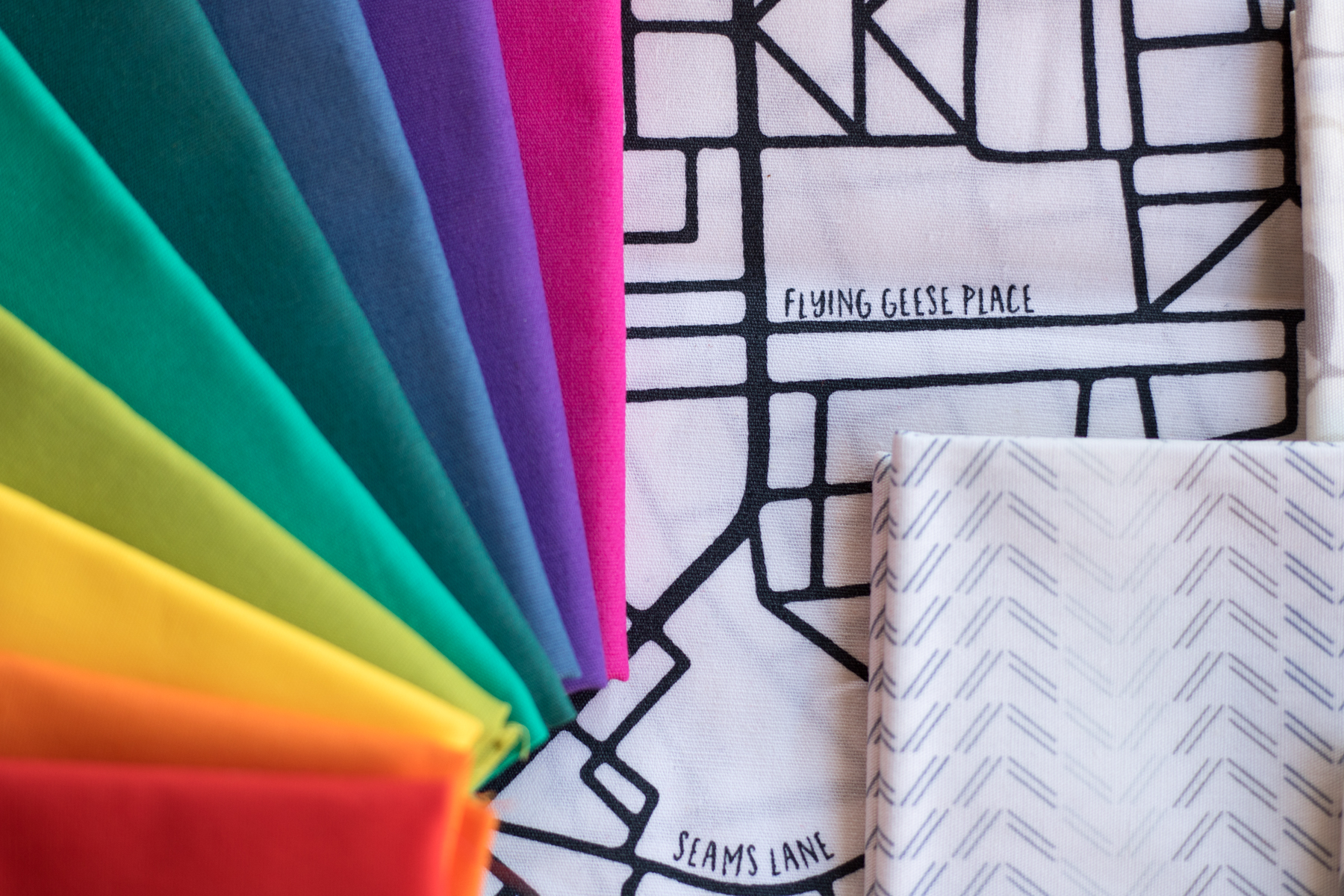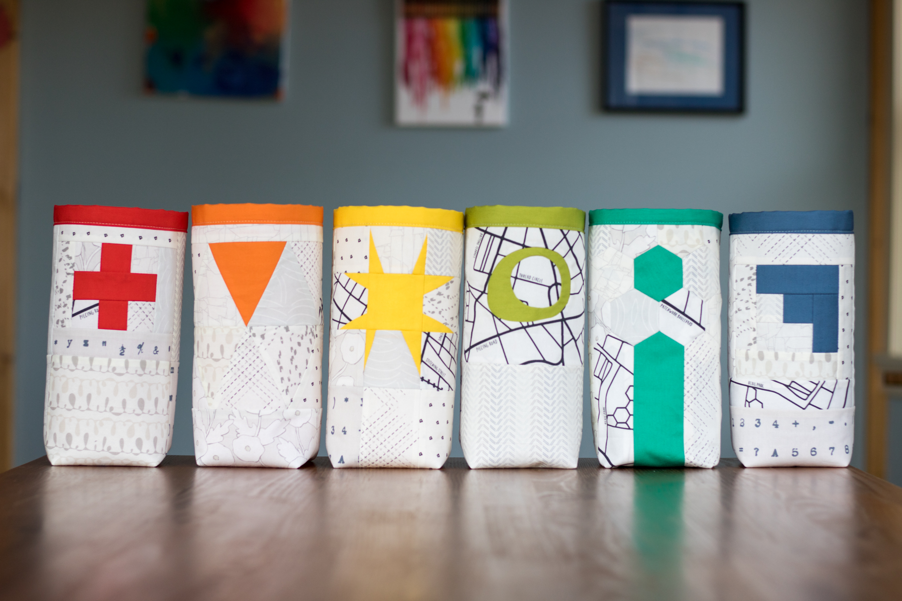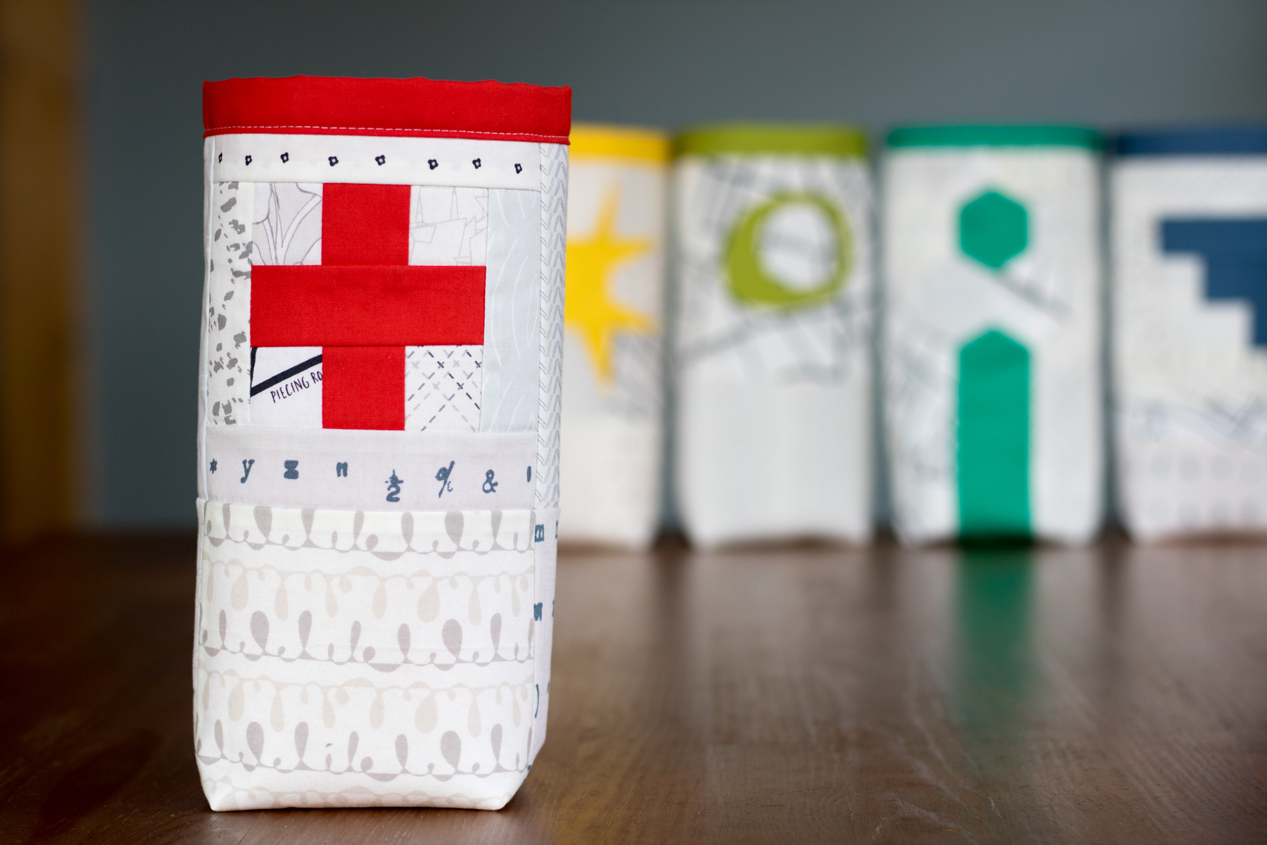 I love the Lower the Volume Capsule collection, but my favorite might be the little details on the Quiet Downtown print. I can see myself meticulously cutting specific quilty street names to add to my projects, and couldn’t resist some meticulous cutting in making the bins.