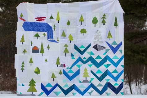 I’m triple excited since I *just* managed to finish my Summer Adventure Quilt flimsy, so it will be traveling to Pasadena with me! Those of you attending my lecture will be able to see it in real life! I’ll share one quick photo here now, but will write much more about it upon my return. This quilt is quite special to me, and I can’t tell you how great it feels to have the quilt top together!