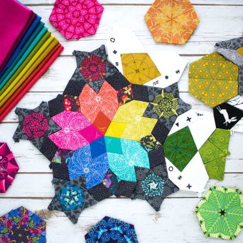 Perfect for both beginner and experienced EPPers alike, Pollinate is a diverse pattern that has endless possibilities for design and color play. Plus, the “filler” sections look like bees!! You can see the many different Pollinate quilts taking shape on Instagram by checking out the