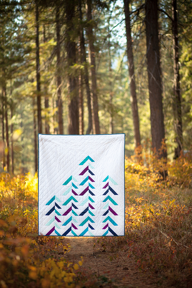 into the forest quilt theory pattern cloud9 organic fabrics aurifilTake a leisurely stroll with me into the depths of nature. Into the Forest plays with two sizes of the same block to create a simple graphic tree design with a crisp and clean aesthetic, like a morning stroll through a cool forest. Inspired by the majestic evergreen trees ubiquitous in Maine, this quilt uses your 5 favorite fat quarters to make a nature inspired lap quilt finishing at 52″ x 60″. Use organic, repurposed, or naturally dyed fabrics to really become one with nature.
