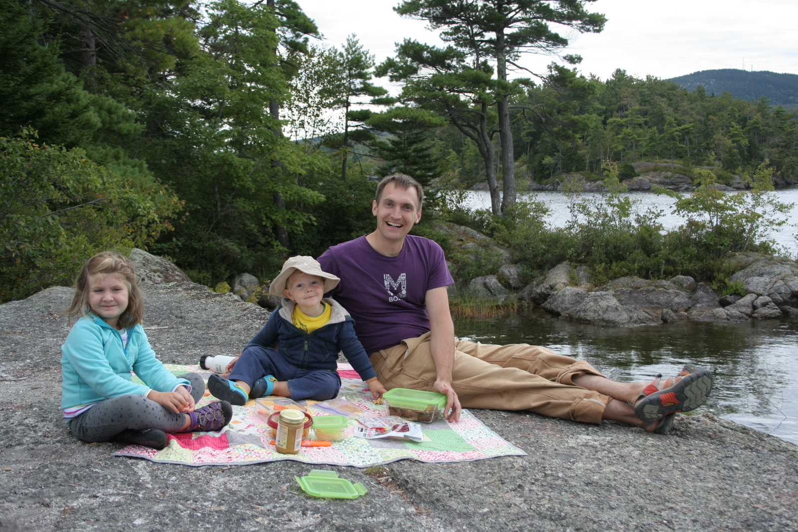 A picnic quilt was the perfect starting point, since it helped the stress level go WAY down. It was my first time ever making a quilt, but because it was slated to be a picnic quilt, with the knowledge that we would flop it down on the ground and spill food all over it, surely change diapers on it, drip lake water and watermelon juice all over it, smear avocado into it, and all of the other love-filled-things that happen on picnics, I was much less worried about imperfections. And boy, has it seen its share of babies and picnics!