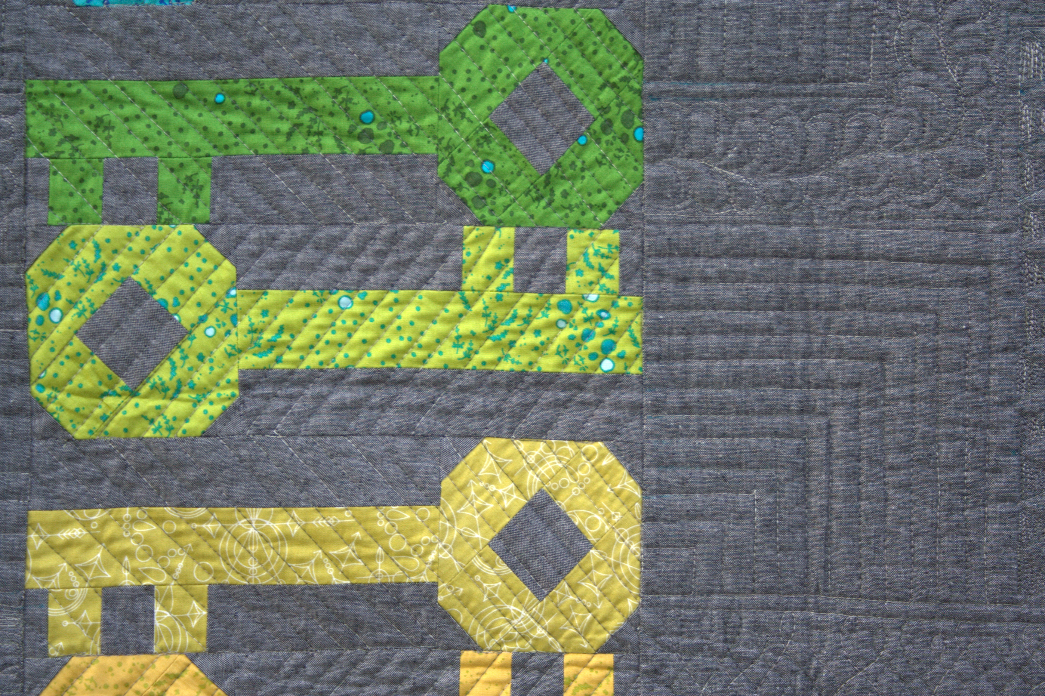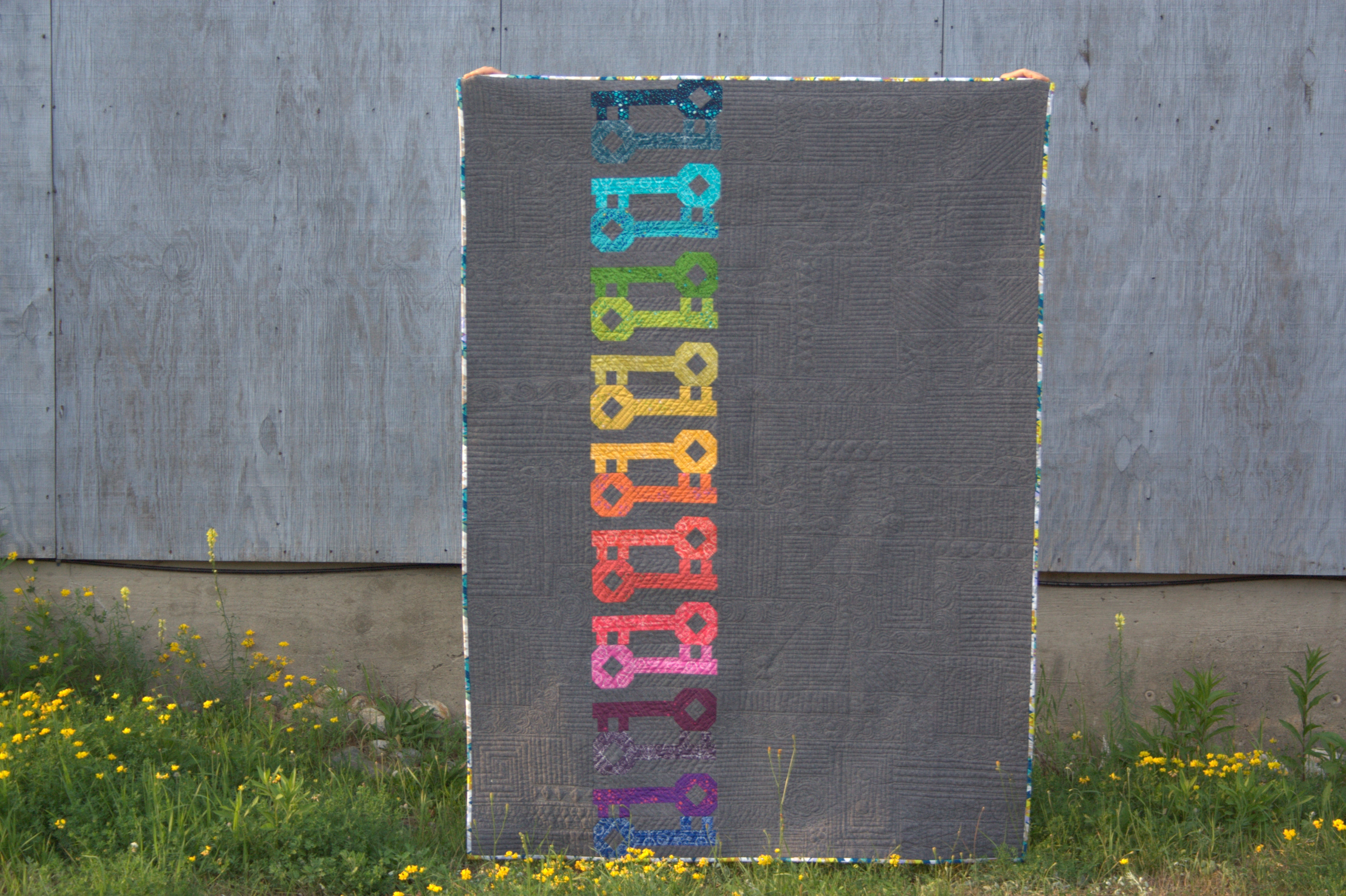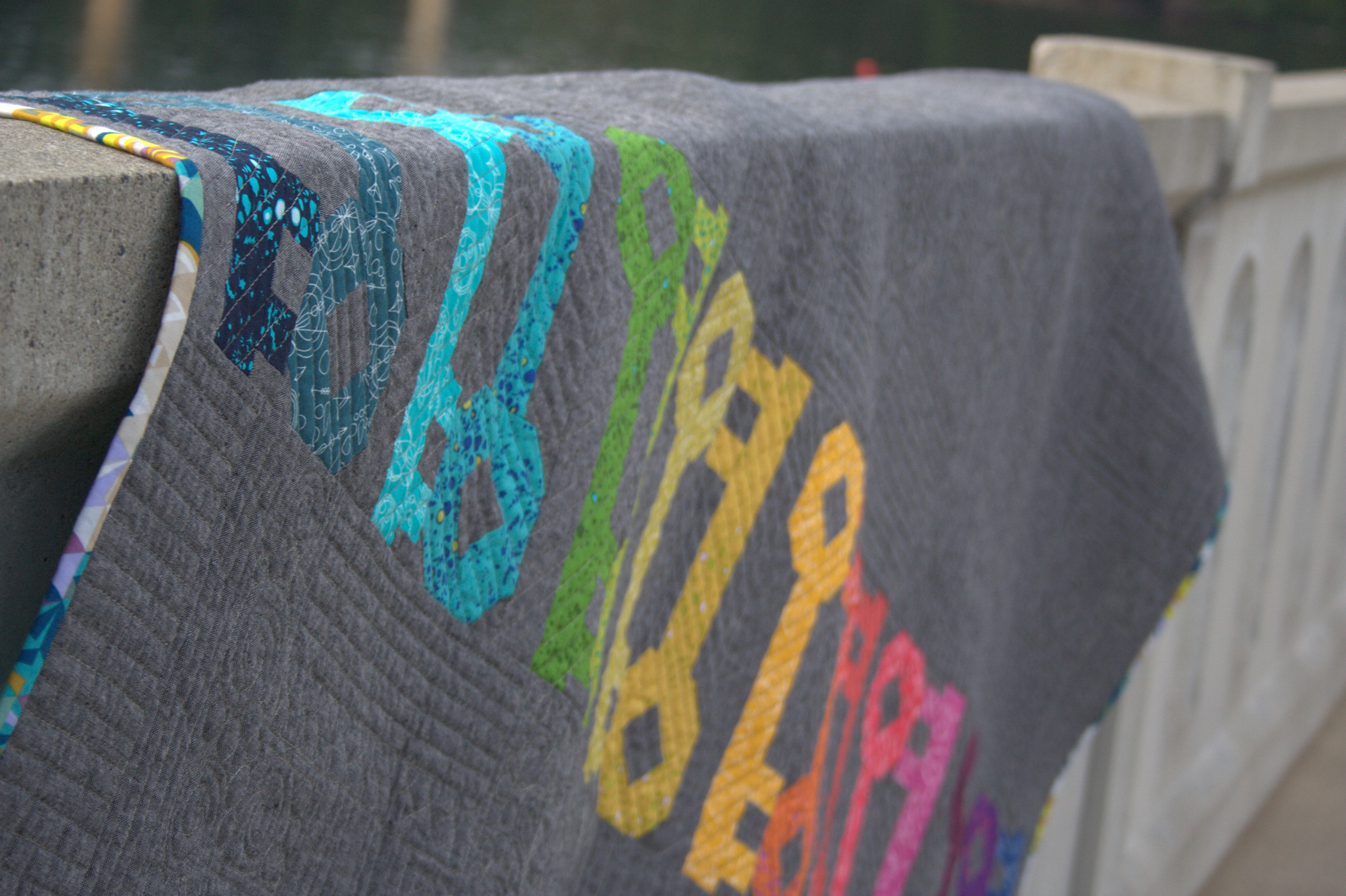 Staggered also includes a link to instructions for a bonus rainbow binding, since I couldn’t help but extend that rainbow off the edge of the quilt. So much fun!